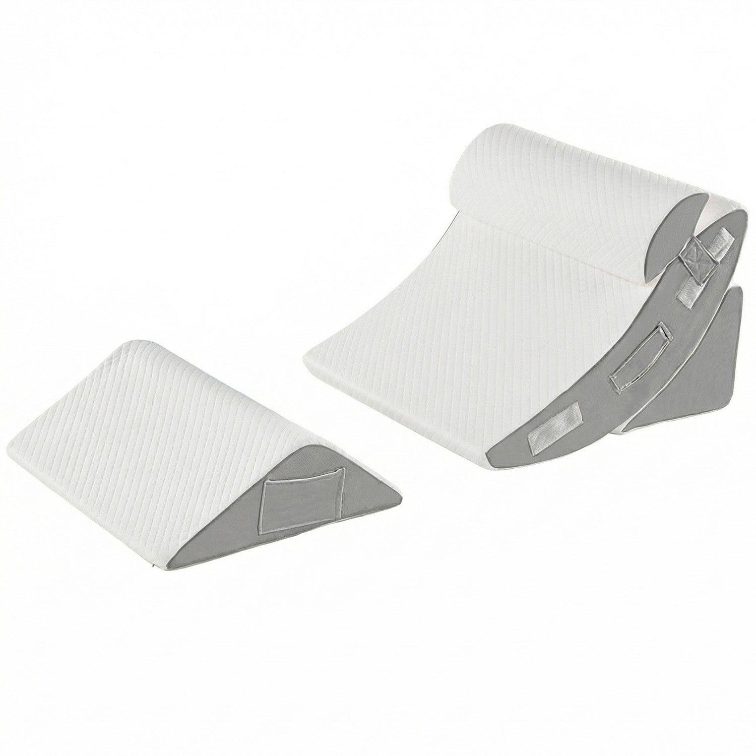Perna Ortopedica Triunghiulara Elindor® pentru Pat, Perna din Spuma cu Memorie, Set 4 Piese, Suport Spate, Cap, Post-Operator, Anti-Reflux, Antisforait, Antirid, Husa Detasabila cu Fermoar, Reglabil cu Velcro, 57 x 57 cm, Alb / Gri