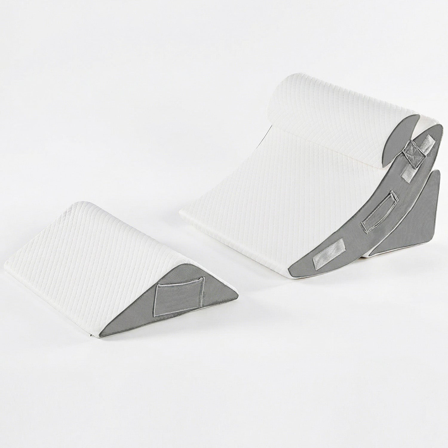 Set 4 Perne Ortopedice Tip Wedge Elindor® din Memory Foam 40D, Reglabile, 57 × 57 cm, Suport pentru Spate, Gat si Picioare este conceput pentru a oferi aliniere corecta a coloanei si sustinere ergonomica in timpul somnului sau relaxarii. Designul triunghiular se adapteaza curburii naturale a corpului, contribuind la reducerea disconfortului cauzat de dureri de spate, reflux gastric, sforait sau perioada post-operatorie.