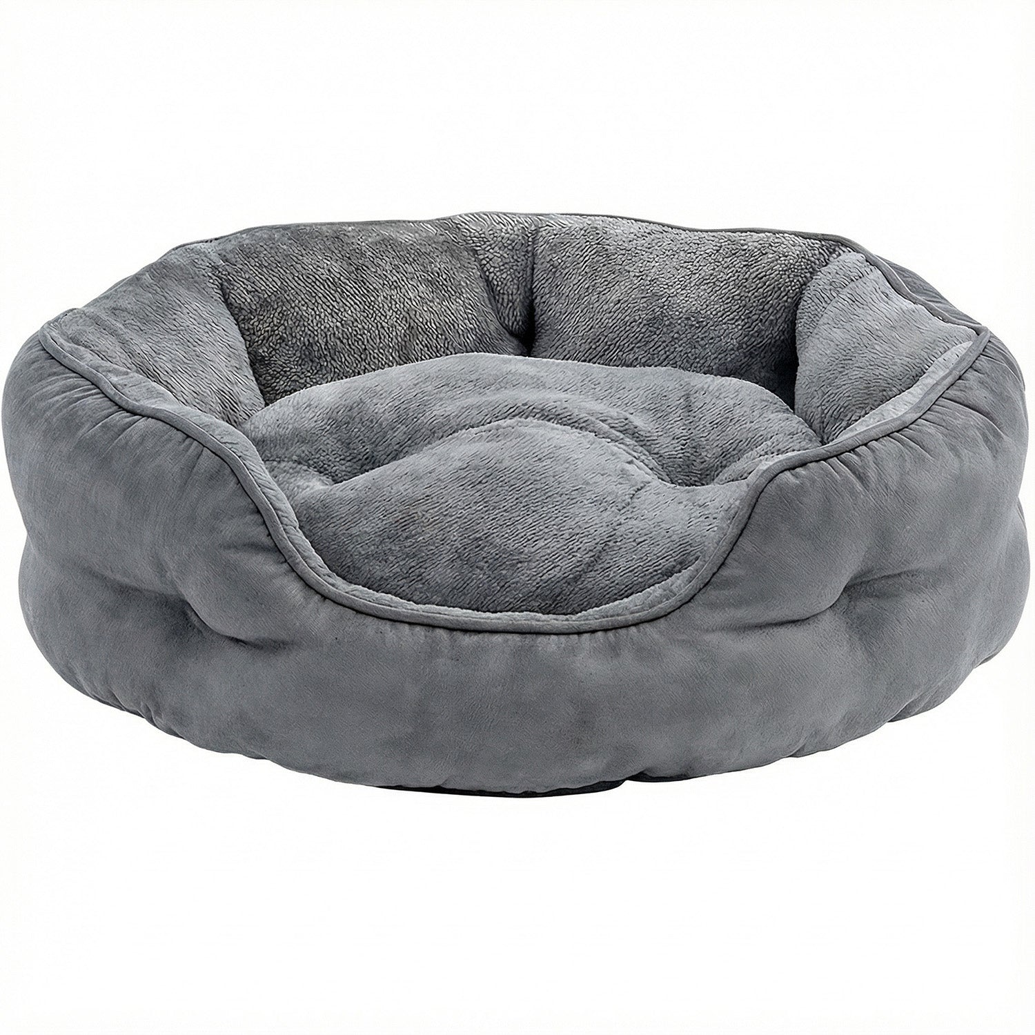Pat pentru Pisici si Caini Mici Elindor® – Forma Rotunda, Perna Moale, Lavabil, Baza Antialunecare, pentru Interior, Gri (65 × 55 × 20 cm)