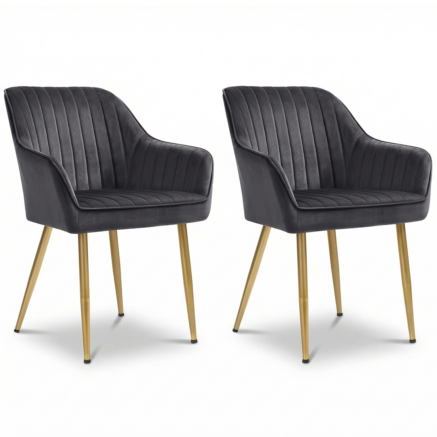 Set 2 Scaune Dining Elindor® – Tapitate Catifea, Cu Cotiere, Spatar Matlasat, Picioare Metalice, Design Modern (55.5 × 43 × 83 cm)