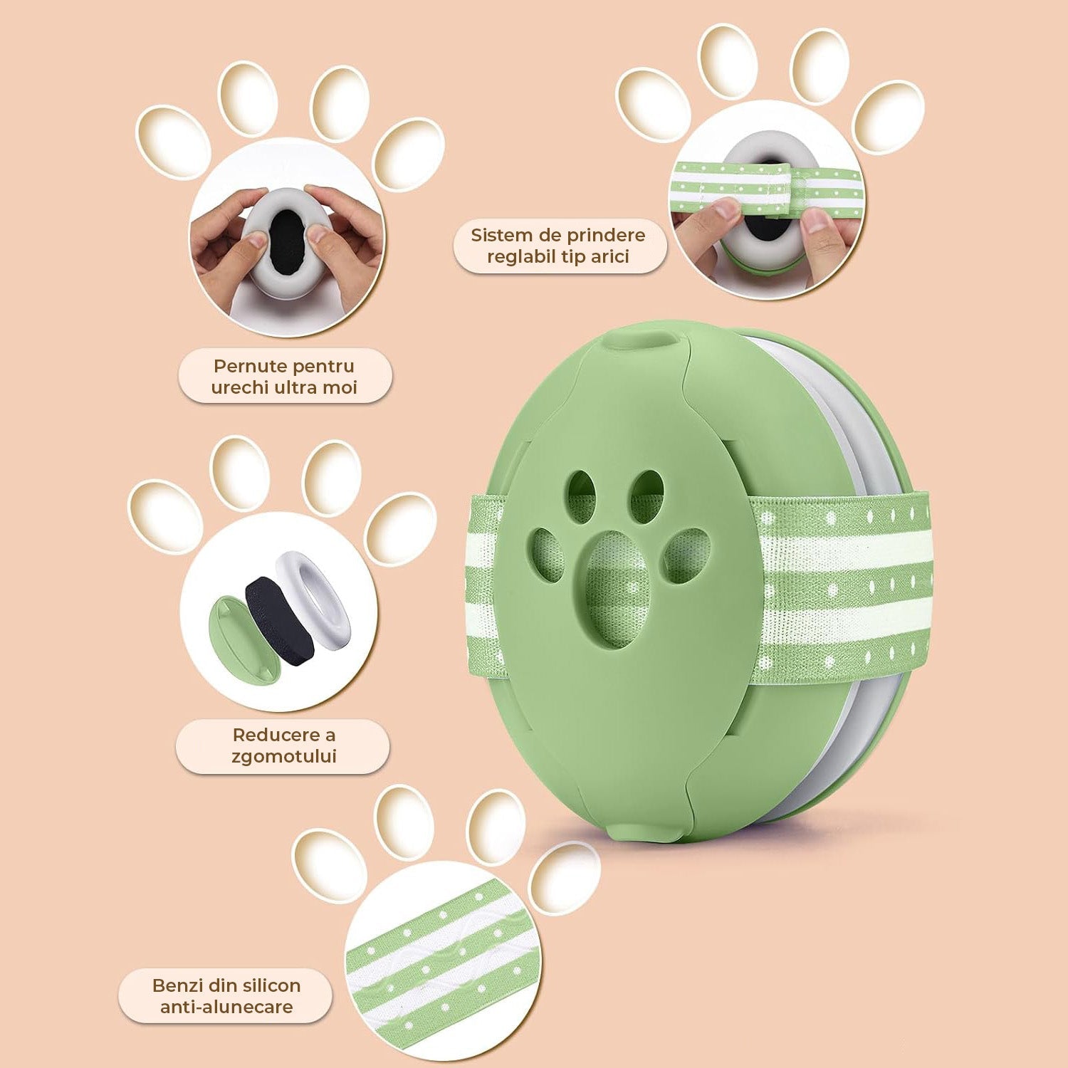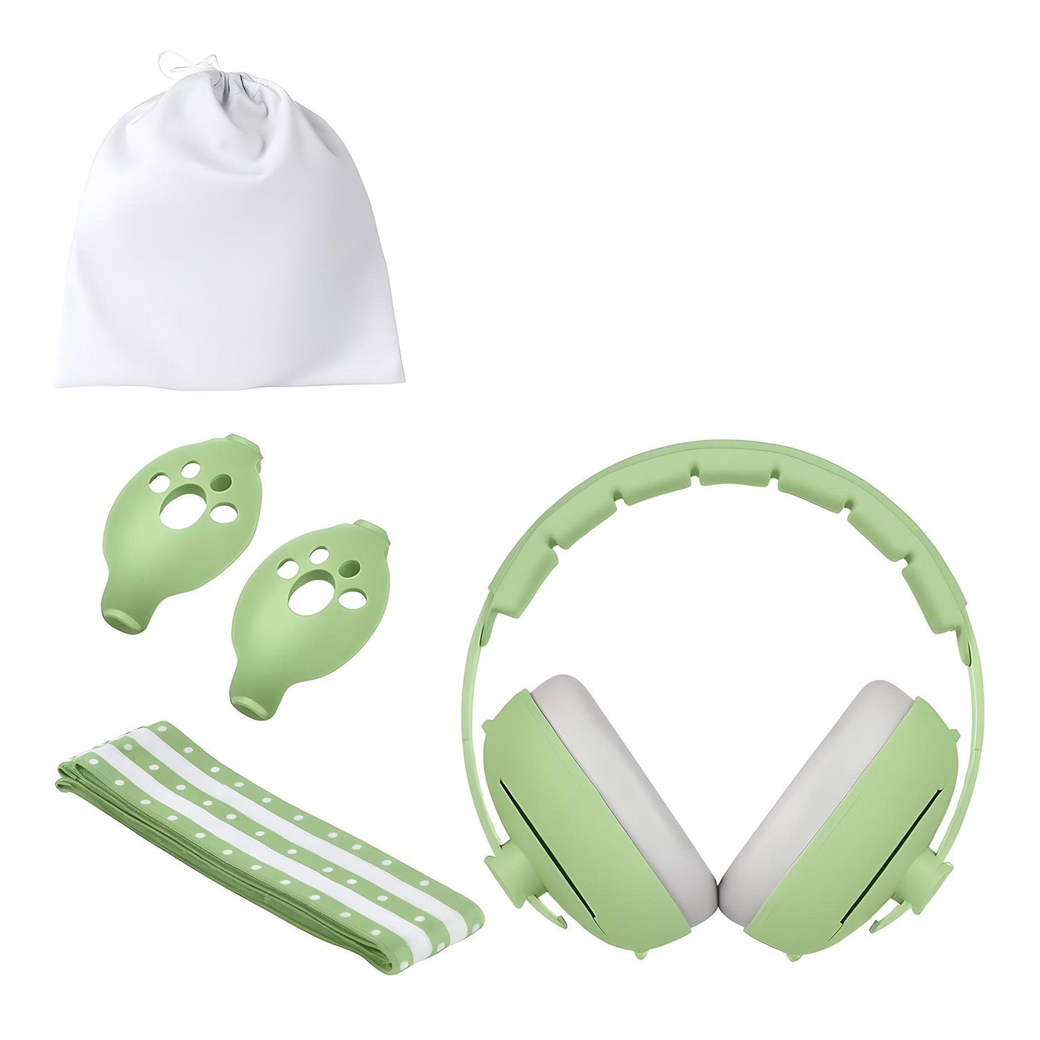 Casti Antifonice Elindor® pentru Bebelusi, Varsta intre 3 si 18 luni, cu Pernute Moi pentru Urechi, Benzi Anti-alunecare din Silicon, Prindere cu Arici, 3 Dimensiuni Reglabile, Reducere a Zgomotului cu 25 dB, Accesorii Bebe, Verde
