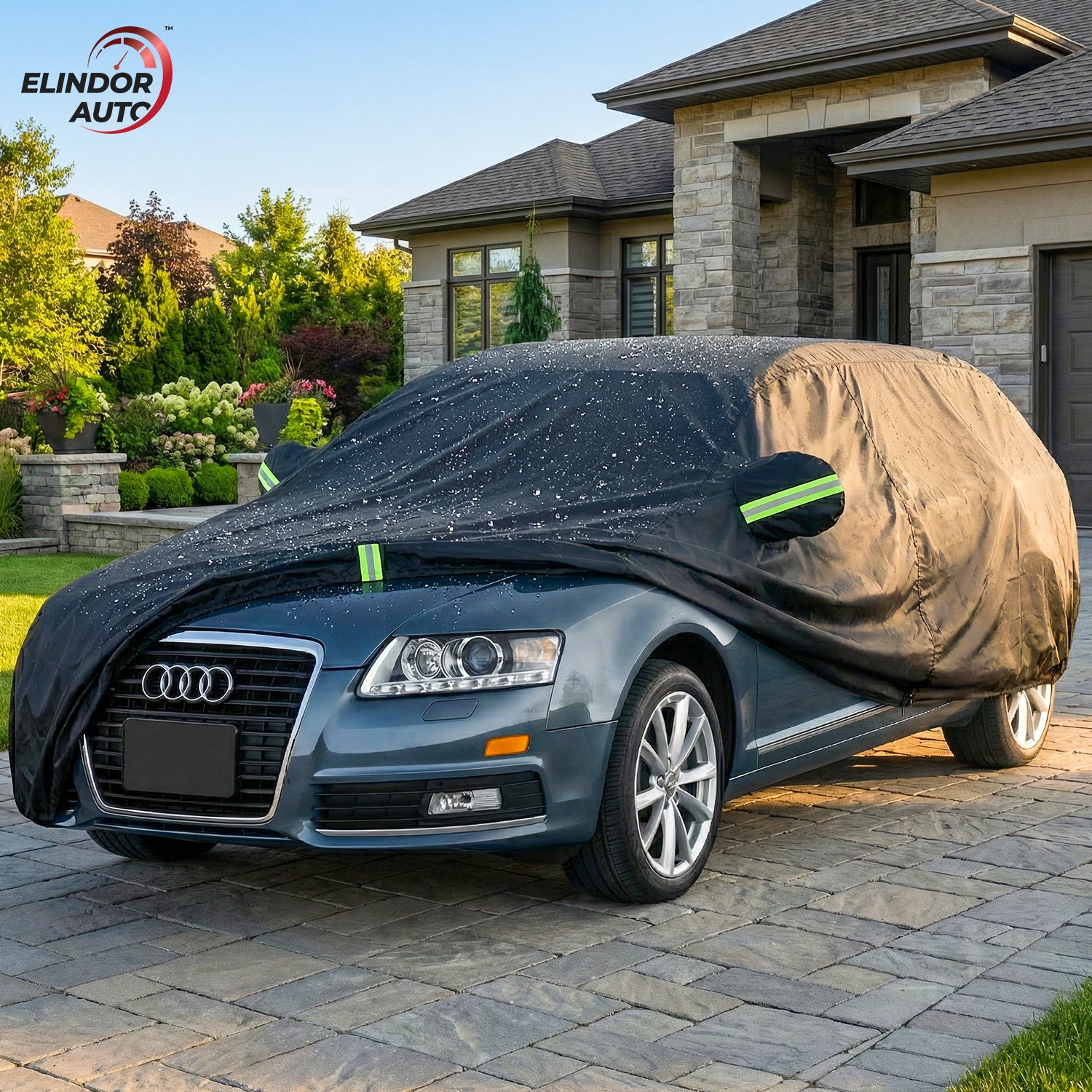 Husa Auto Elindor® – Impermeabila, All Season, Protectie Completa Exterior, cu Fermoar Lateral, Benzi Reflectorizante si Prindere Antivant