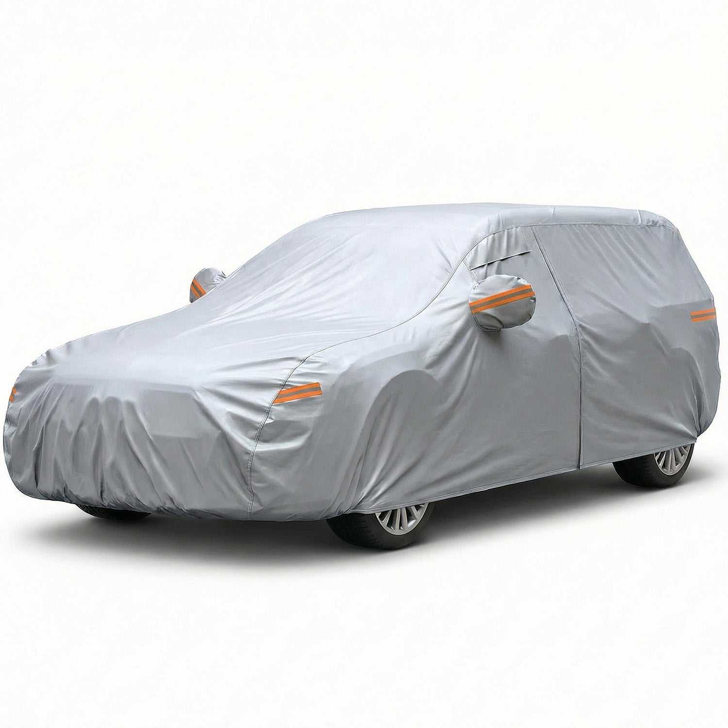 Designul profesional include fermoar lateral pentru acces rapid in interiorul vehiculului fara a indeparta complet husa, 6 benzi reflectorizante pentru vizibilitate pe timp de noapte si buzunare pentru oglinzi, care imbunatatesc fixarea si protejeaza oglinzile laterale impotriva zgarieturilor.