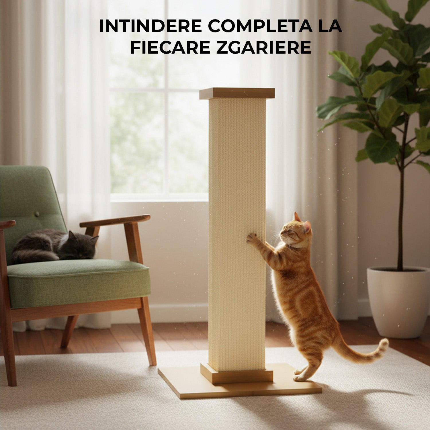 Satisfăce instinctul natural de zgâriere al pisicii și protejează mobila, oferind în același timp exercițiu și reducerea stresului.