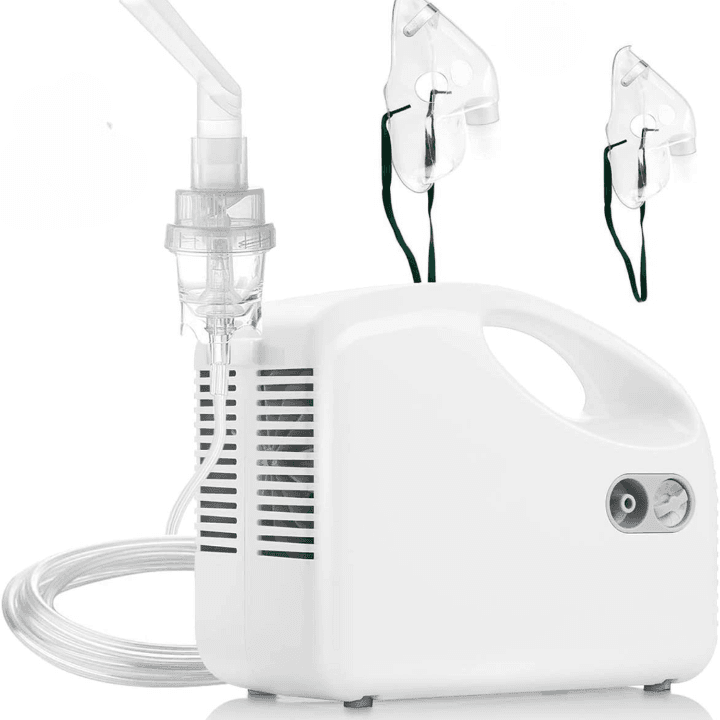 Aparat aerosoli inhalator, nebulizator cu compresor, 0.2ml/min, măști copii și adulți, alb