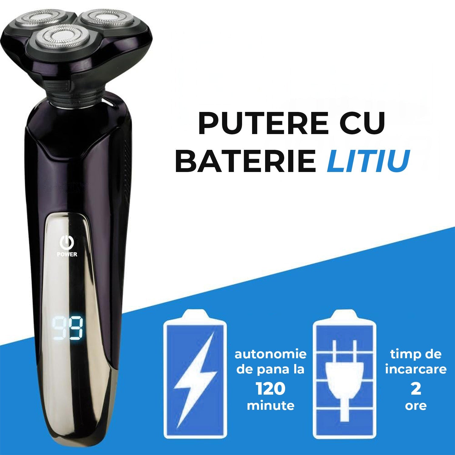 Dotat cu o baterie reîncărcabilă cu litiu, aparatul oferă o autonomie extinsă, permițând utilizarea fără întreruperi și fără grija înlocuirii frecvente a bateriilor.
