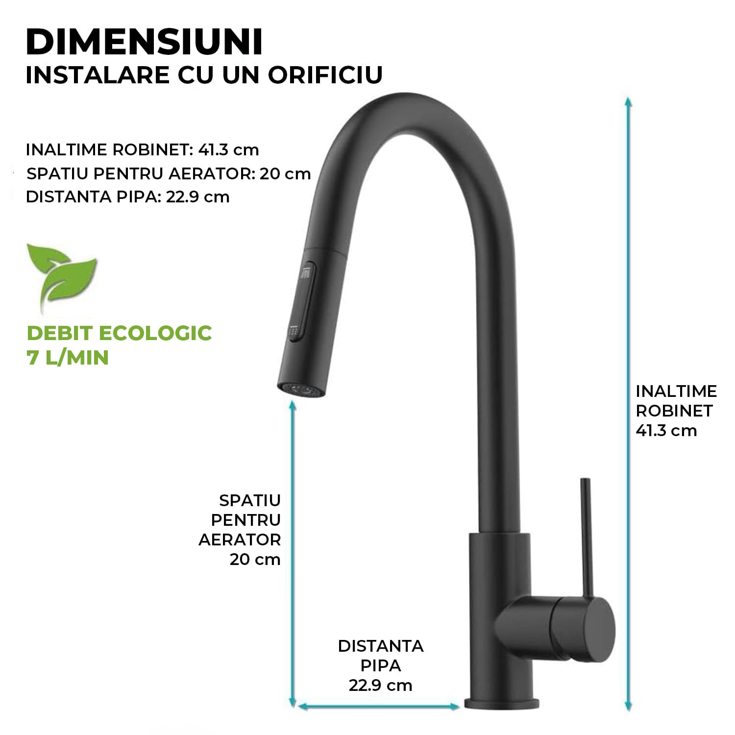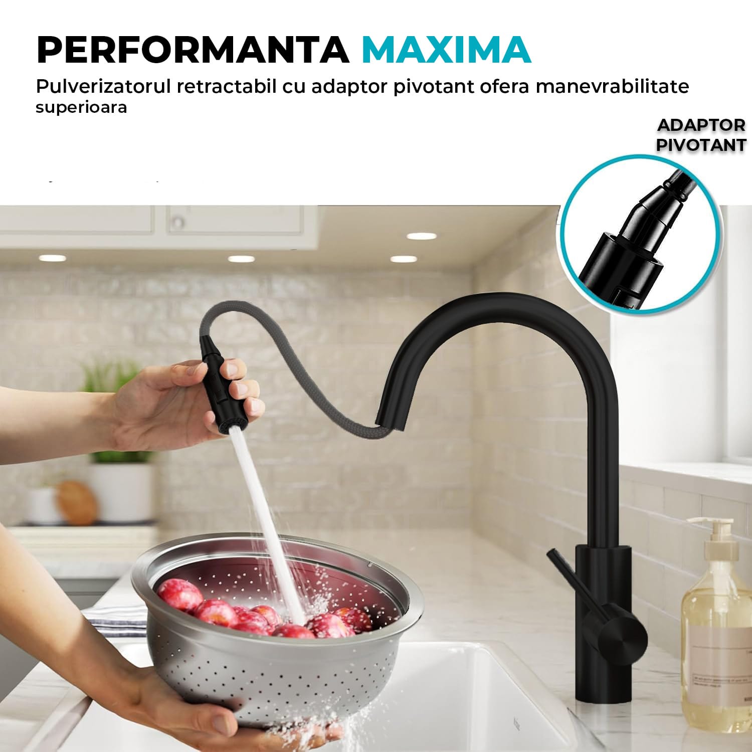 Baterie Bucatarie cu Dus Extractibil Elindor®, Jet Ajustabil, Design Modern, Negru