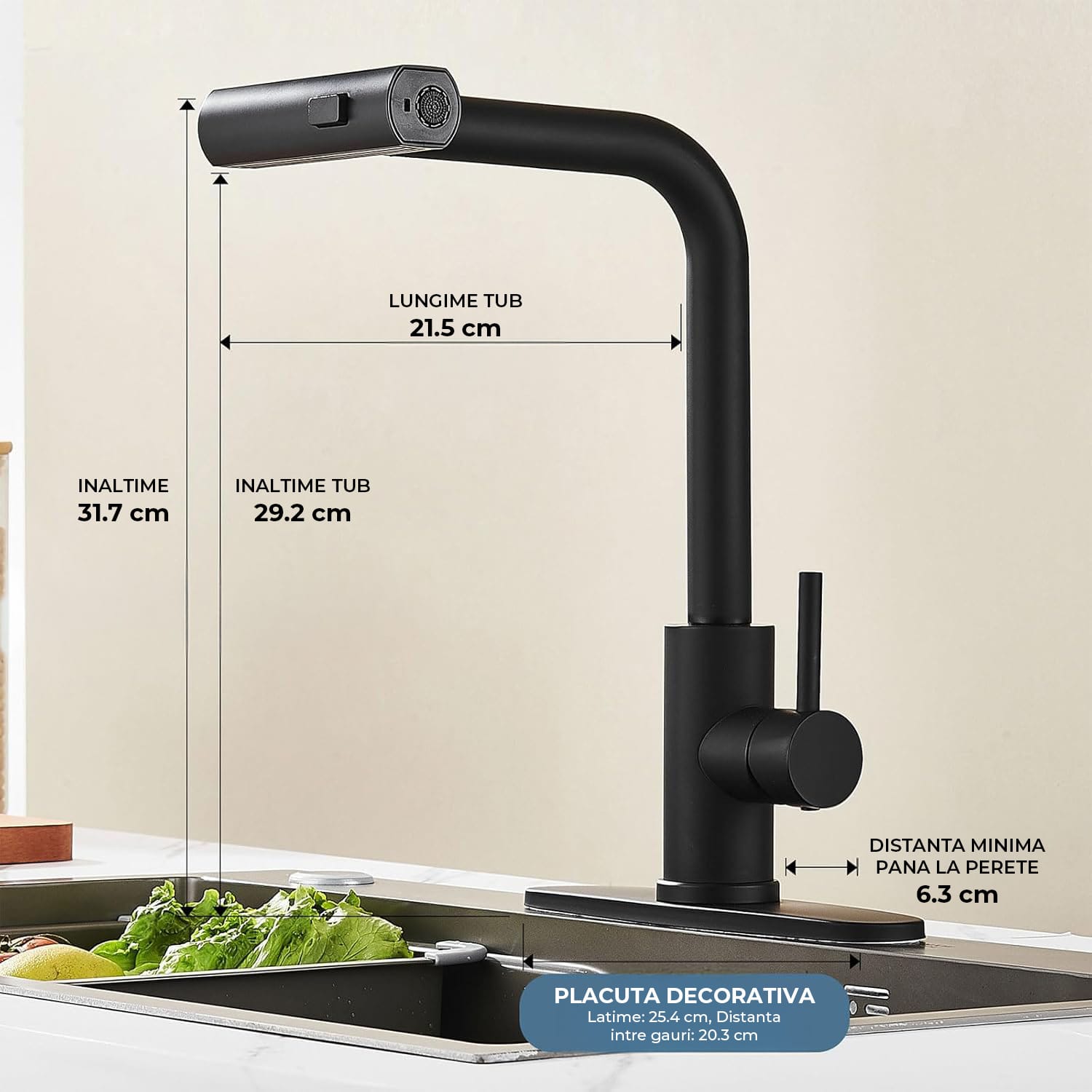Finisajul elegant din nichel periat adauga un plus de rafinament oricarei bucatarii, fie ca este moderna sau clasica. Designul minimalist se integreaza armonios in orice spatiu, oferind un aspect curat si sofisticat. Capul de pulverizare retractabil, cu un furtun flexibil de 40 cm, faciliteaza spalarea vaselor, clatirea legumelor si umplerea recipientelor mari cu apa, oferind o experienta mai eficienta in bucatarie.