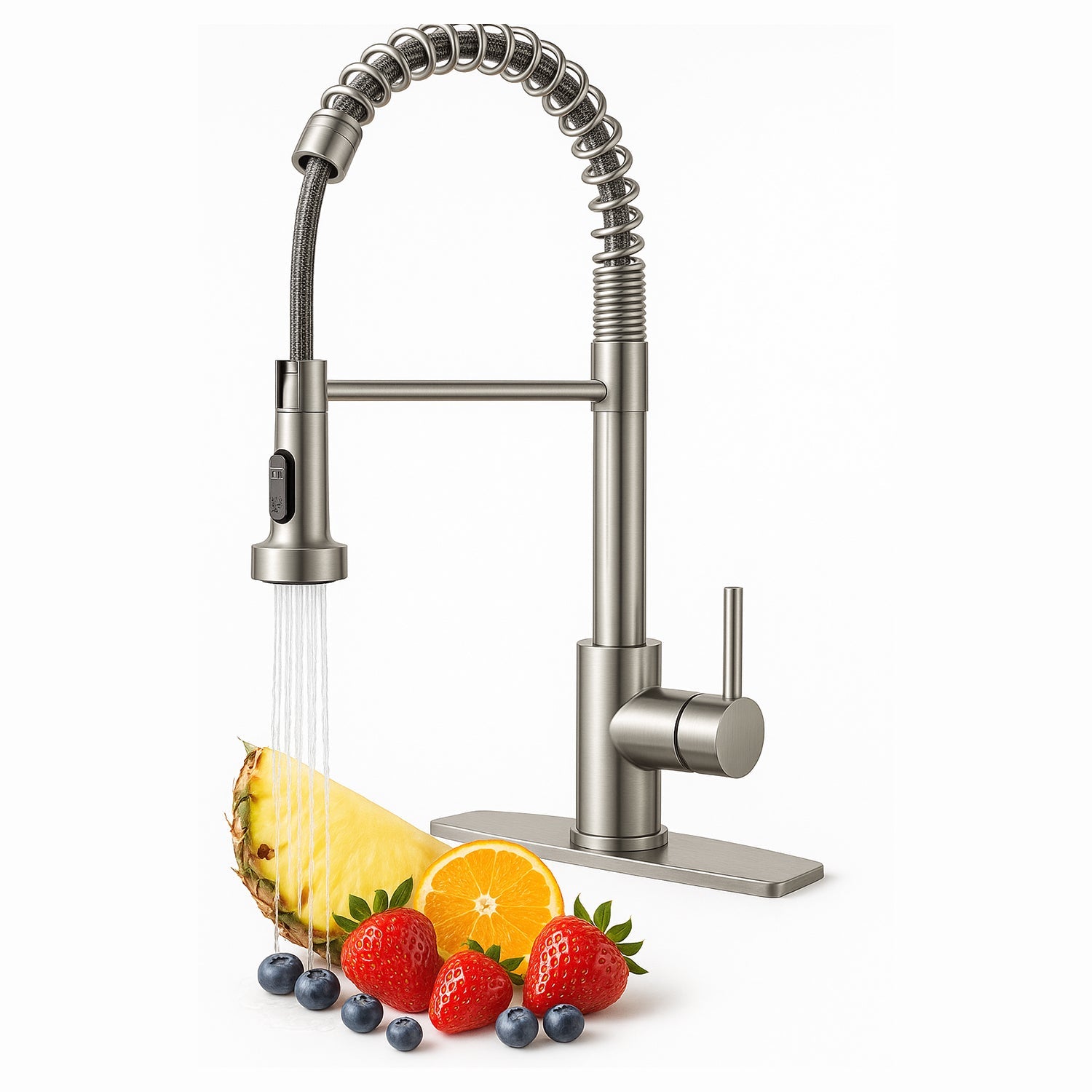 Baterie Bucatarie Elindor®, Robinet Profesional cu Pipa Flexibila, Cap de Dus cu 2 Functii, Jet Reglabil, Montaj Simplu, Rezistenta La Coroziune, Otel Inoxidabil, Chrom