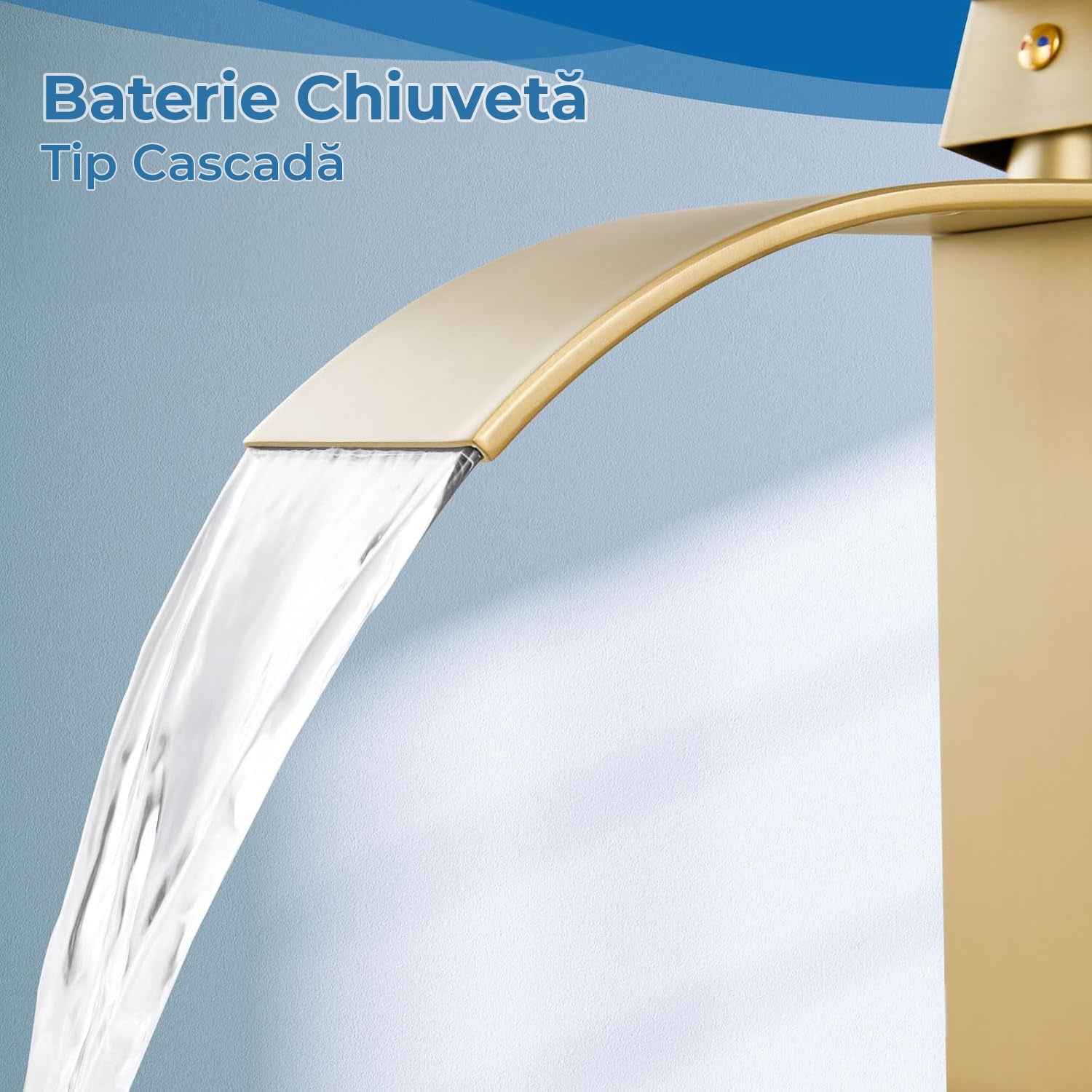 Baterie Chiuveta Moderna Tip Cascada pentru Baie, Bucatarie, Monocomanda, Placa de Montare, Oțel Inoxidabil, Model Inalt, Auriu Periat