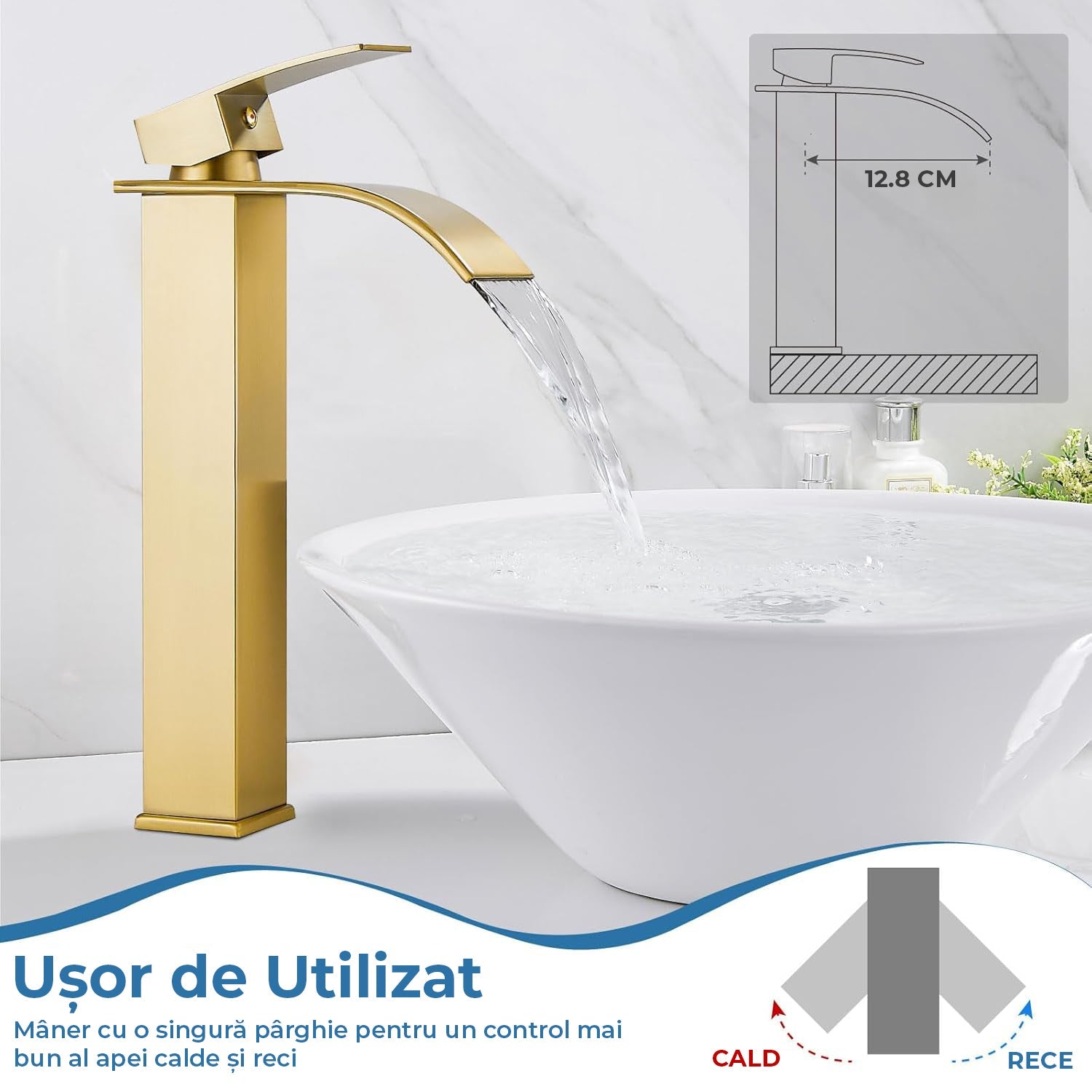 Material Premium: Construit din otel inoxidabil SUS304 de inalta calitate, robinet de baie inalt, robust si rezistent. Bateria inalta pentru chiuveta de tip vas nu va avea scurgeri. Presiune mare, uneori poate fi necesara reducerea presiunii apei pentru o utilizare mai buna.