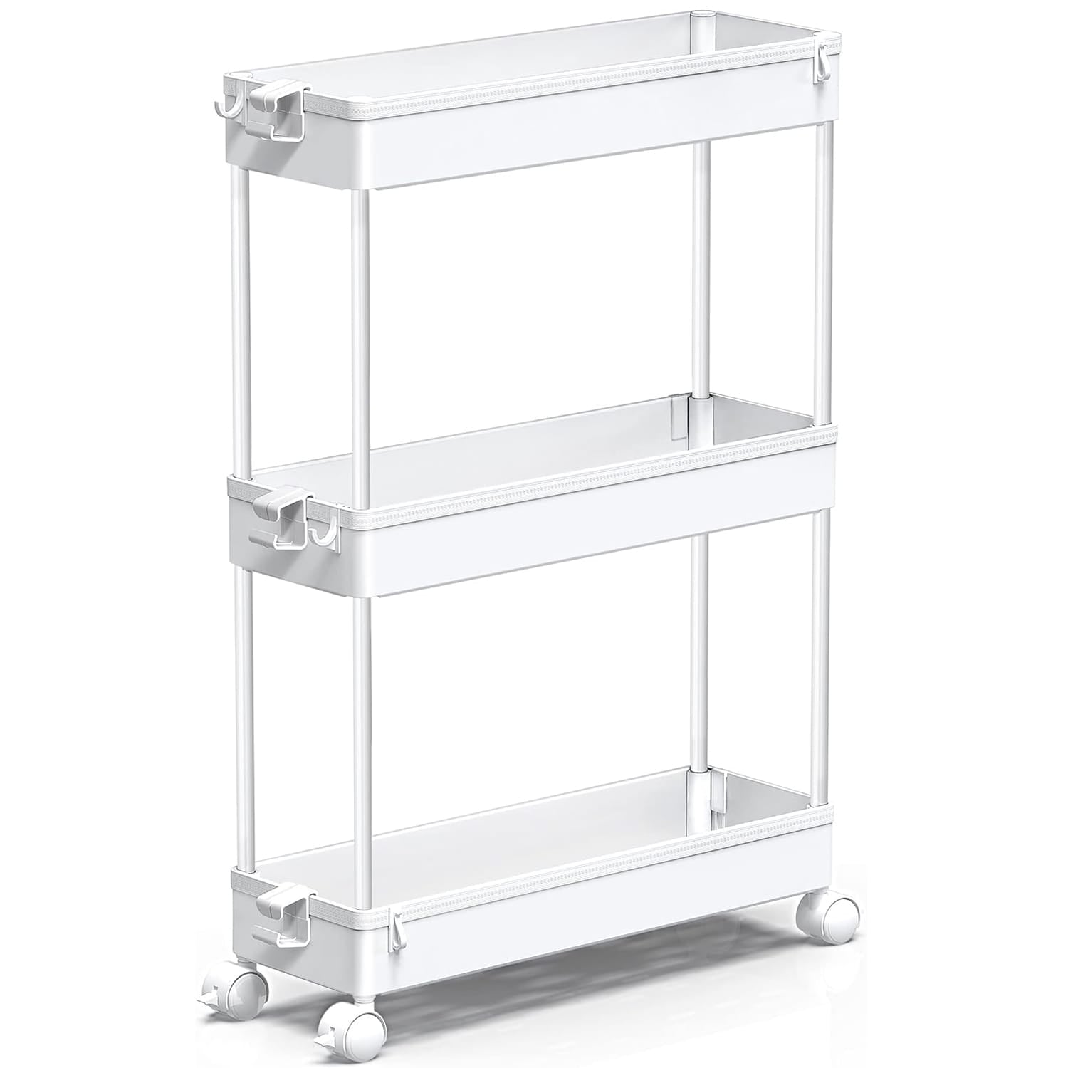 Carucior de Depozitare Slim Elindor®, Organizare, 3 Niveluri, Carlige pentru Chei, Organizator Multifunctional pentru Baie, Birou, Bucatarie, Spalatorie, Locuri Inguste, ABS, Alb