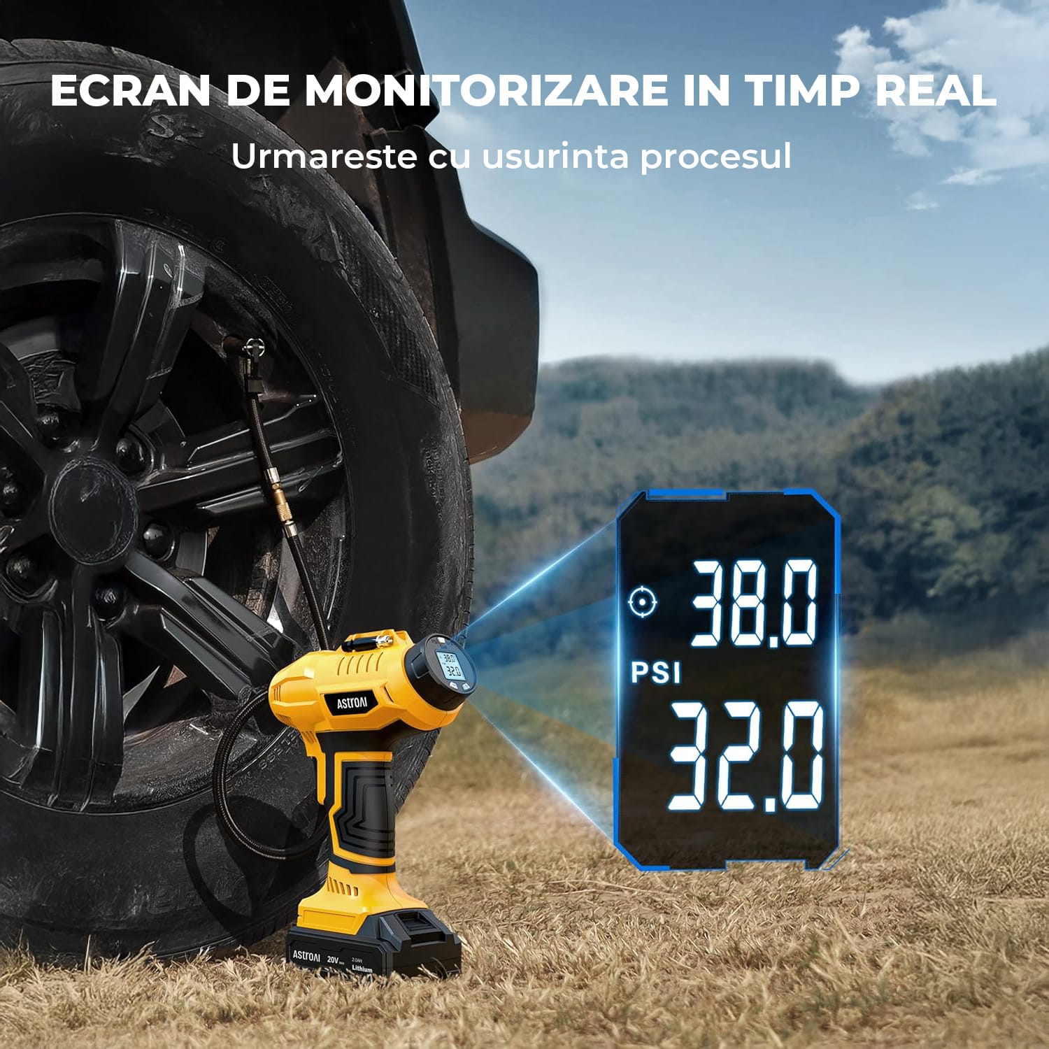 Tehnologie Avansată: Afișajul LCD digital oferă monitorizare în timp real a presiunii, iar funcția de oprire automată asigură umflarea precisă fără riscul supra-umflării.