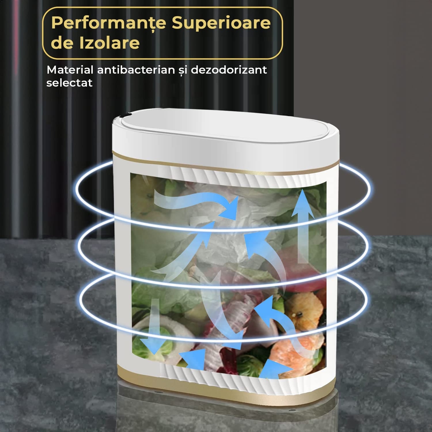 Fara atingere si fara mirosuri neplacute: Cosul de gunoi automat previne contactul mainii cu cosul de gunoi. Acest cos de gunoi de bucatarie poate sigila eficient mirosurile datorita capacului etans. Inelul de sac de gunoi detasabil poate ascunde orice sac, facandu-l o alegere perfecta pentru a-ti face casa mai frumoasa.