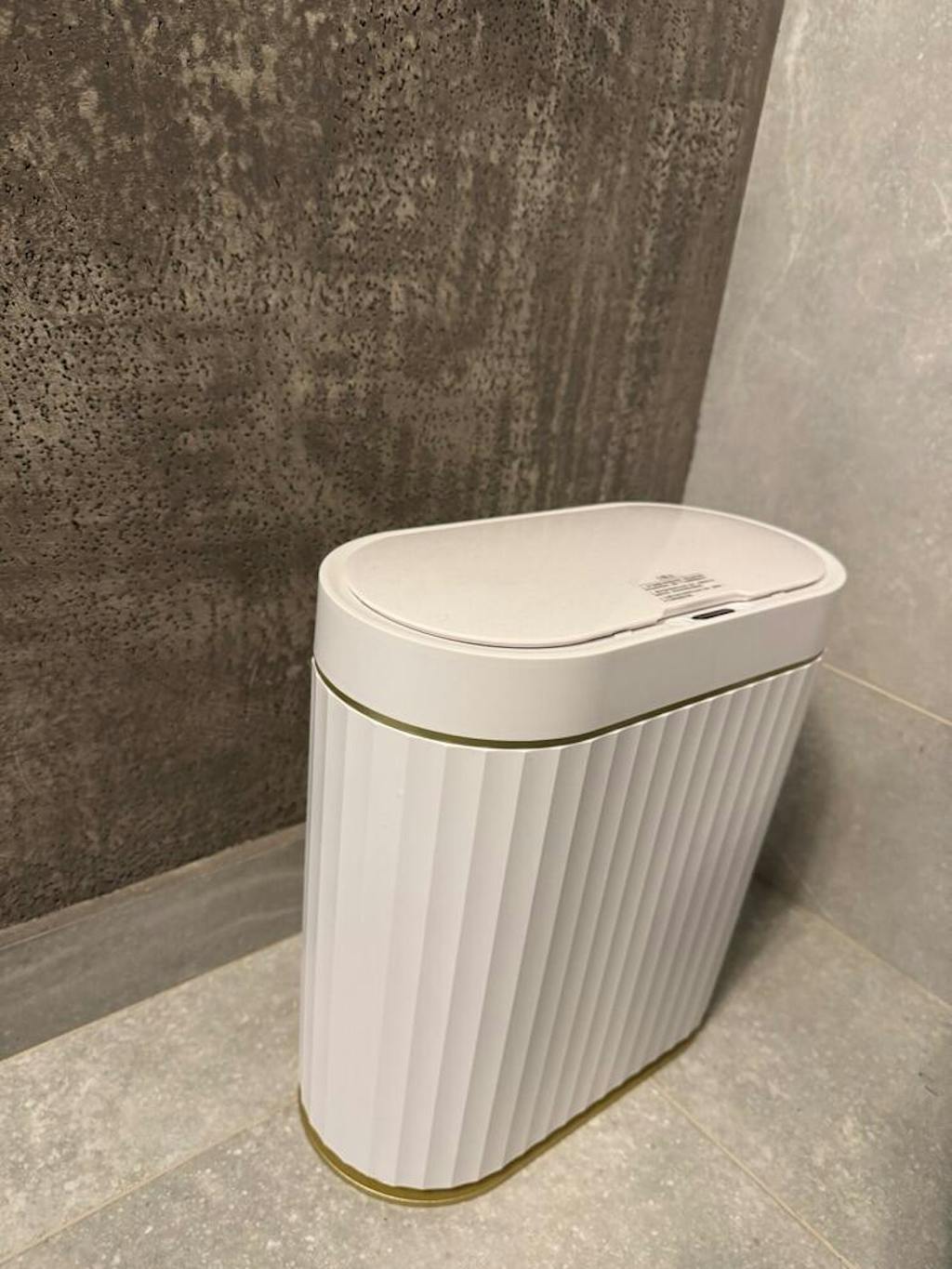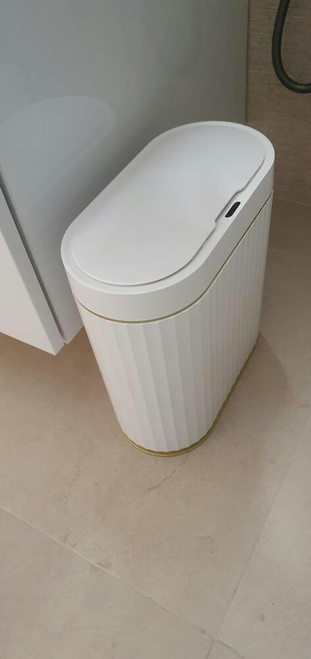 Cos de gunoi inteligent, cu senzor de miscare infrarosu, 9L, capac automat anti-mirossilentios, pentru baie, bucatarie, birou, dormitor, rezistent la apa IPX5, Alb/Auriu
