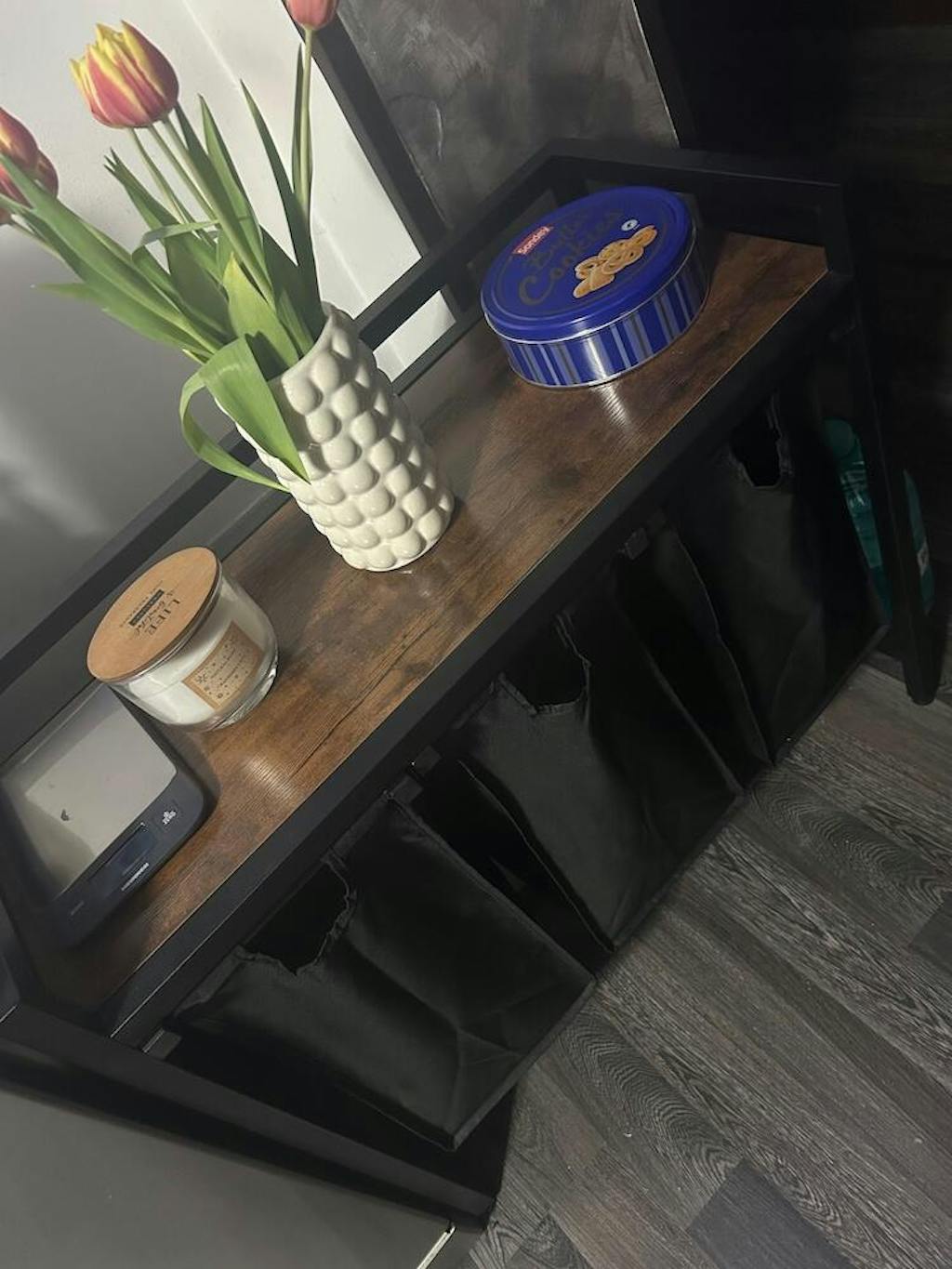 organizator de rufe este fabricat din placi aglomerate si fier, iar panoul
