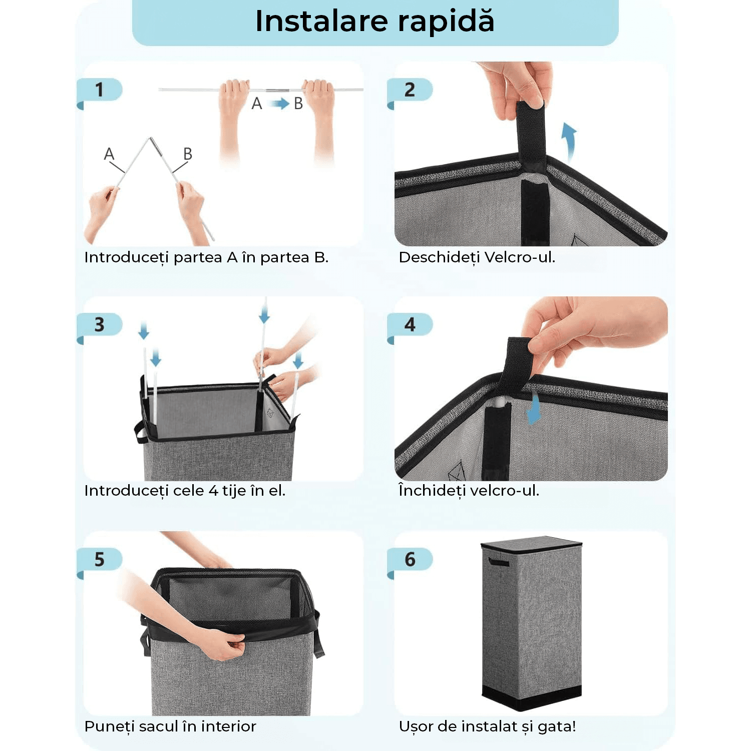 Usor de Asamblat: Cosul se monteaza in cateva minute si vine cu design pliabil pentru depozitare si economisirea spatiului cand nu este in uz Perfect mentinerea organizata spatiului locativ.