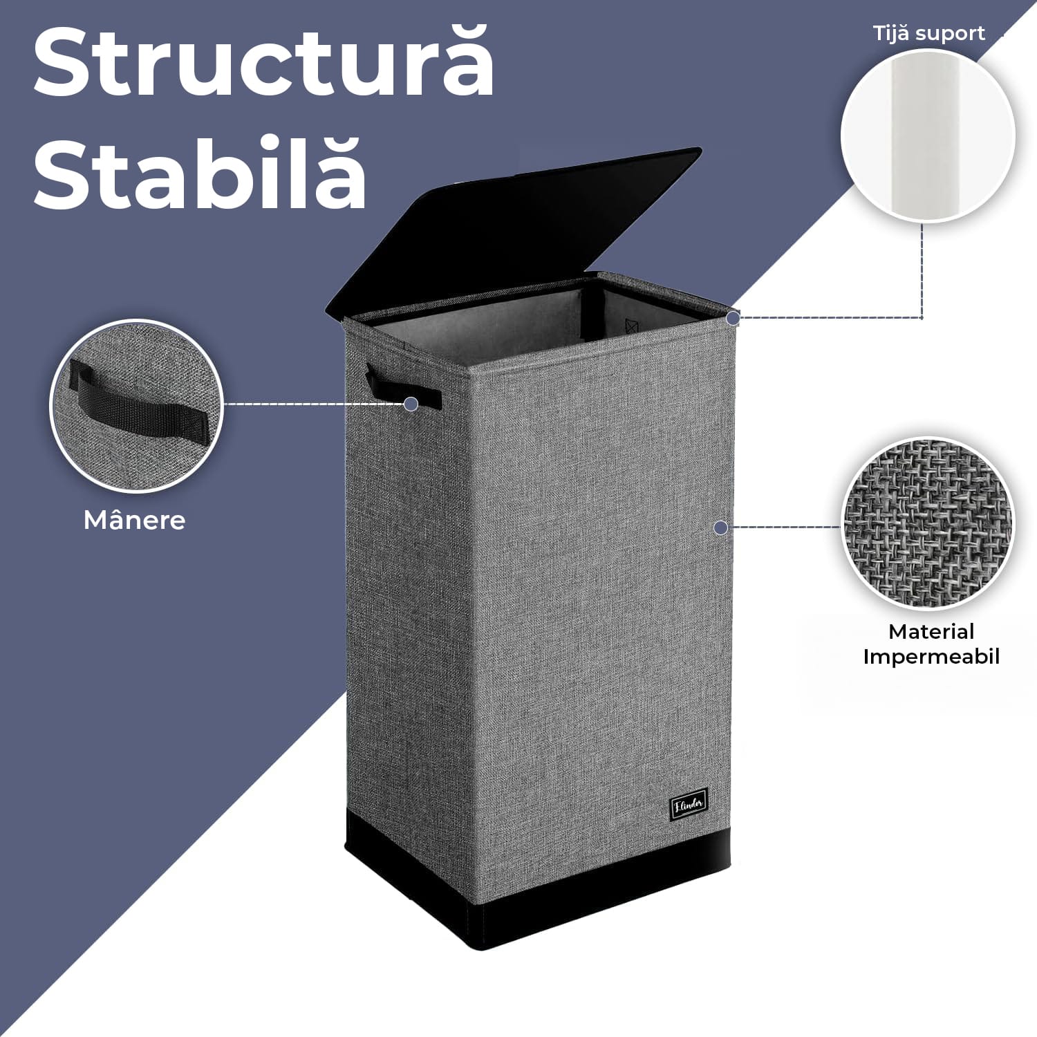 Material Premium & Aspect Elegant: Fabricat din in de imitatie de inalta calitate, cosul nostru de rufe este impermeabil si elegant, imbunatatind decorul oricarei camere in timp ce ofera o durabilitate de lunga durata.