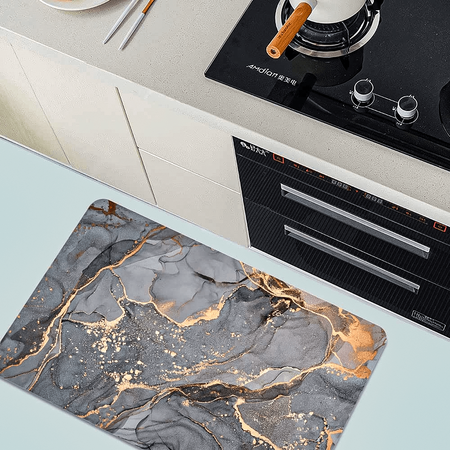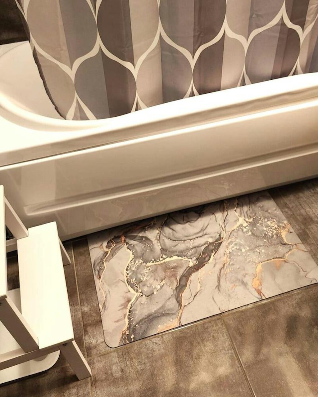 Covor Baie Universal, Spumă Silicon & Diatom, Absorbant, Antiderapant, 50×80 cm, Gri cu Auriu