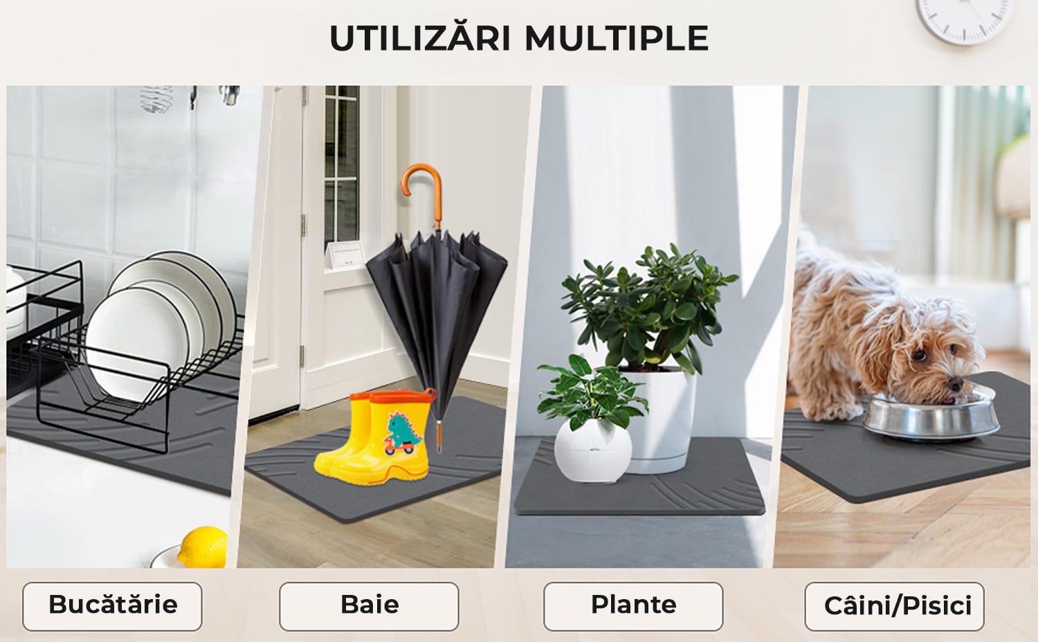 Elegant si Versatil: Descopera covoarele noastre inovatoare din diatomit - un plus esential pentru casa ta. Designul minimalist se integreaza perfect in orice decor, fiind suficient de versatil pentru bai, bucatarii, intrari, suporturi pentru vase, boluri pentru animale de companie si utilizare la piscina.
