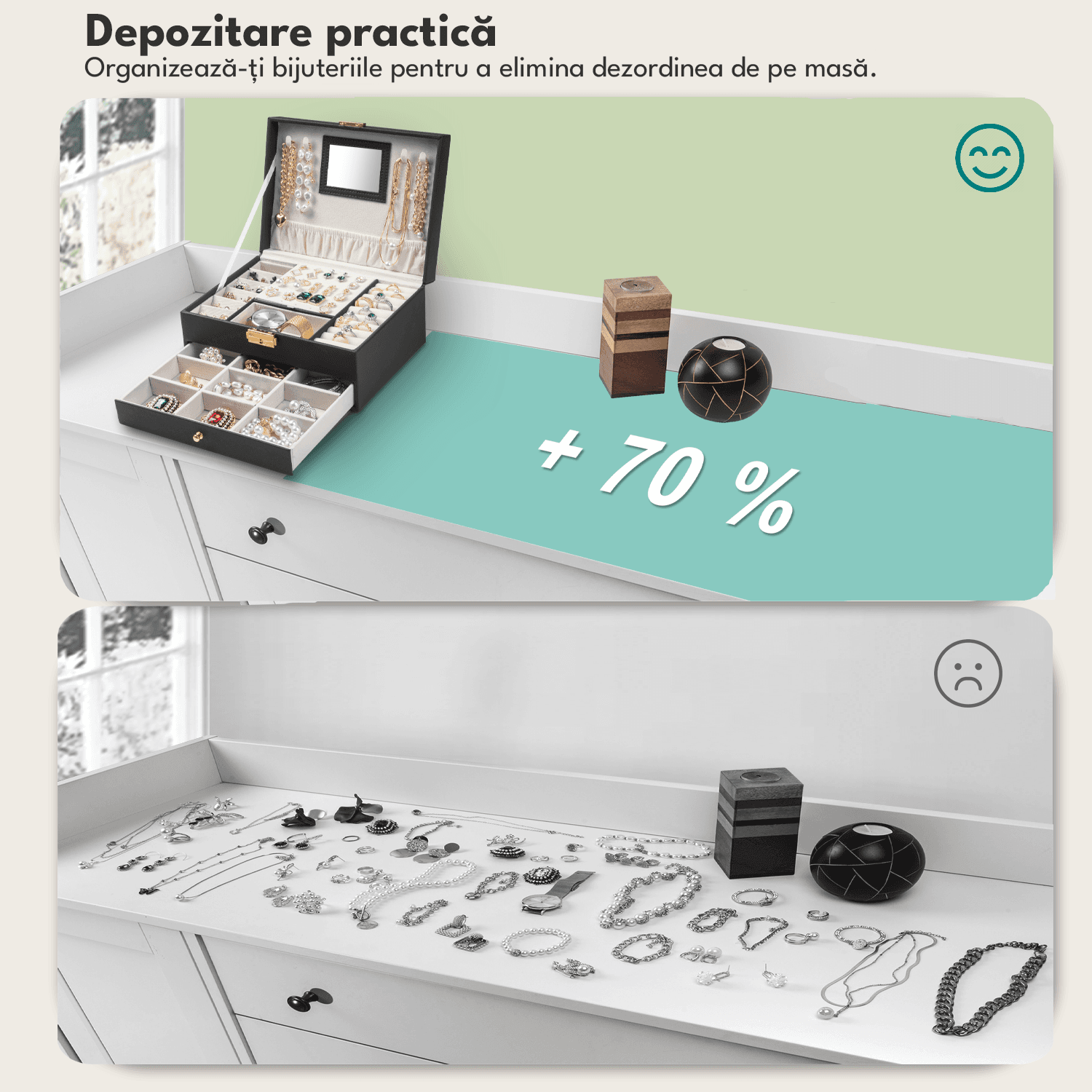 UN CADOU DE LUX PENTRU IUBITORII DE BIJUTERII DIN VIAȚA TA. Căutați un cadou pentru fata dvs. specială? Fie că este pentru soția, prietena sau mama ta, această cutie de bijuterii va pune cu siguranță un zambet pe fața lor. Designul elegant il face un cadou minunat pentru Crăciun, ziua de naștere sau aniversare. Luați una acum!