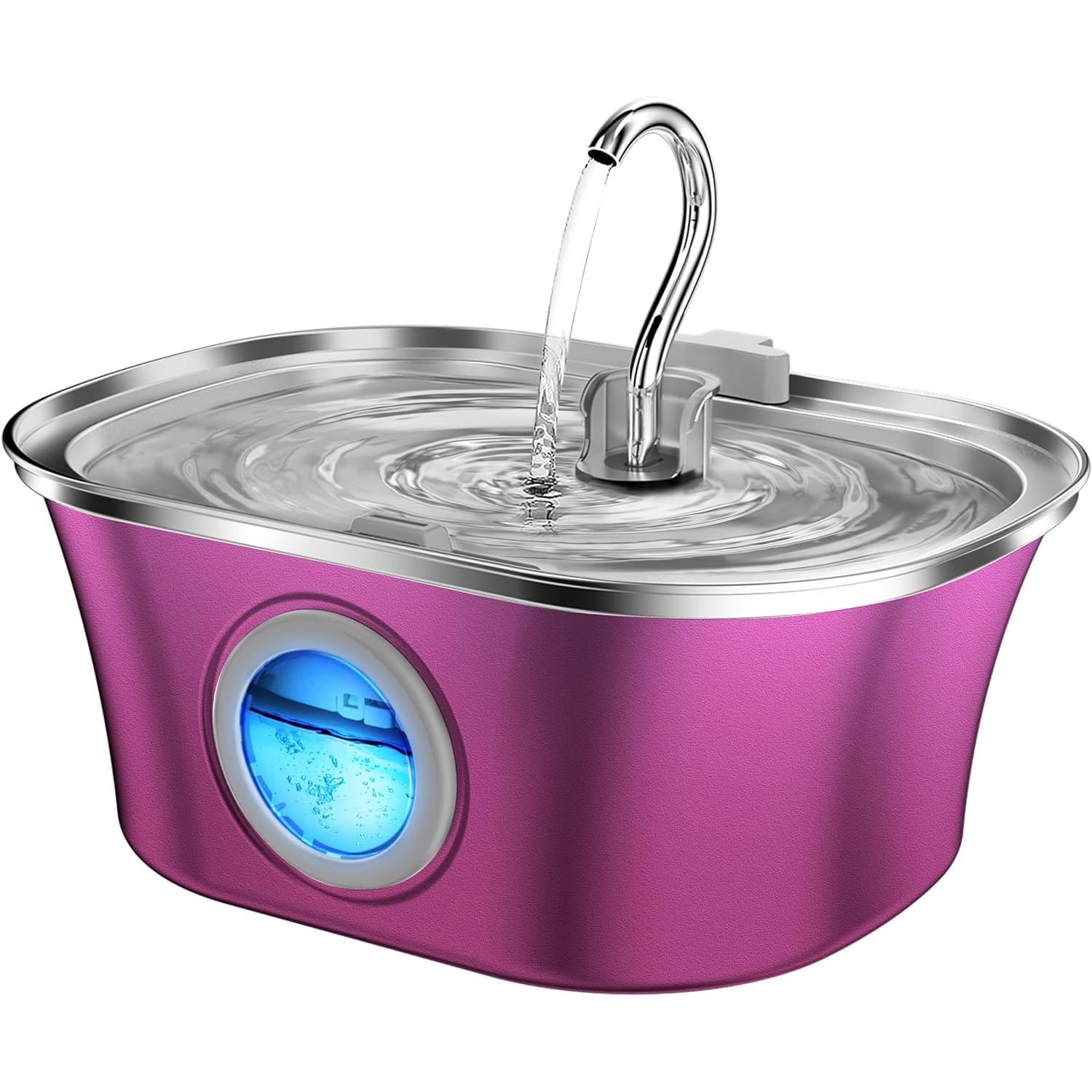 Dispenser apa automat tip fantana pentru pisici si caini cu fereastra pentru nivelul apei, 3.2 L, din otel inoxidabil 304, Sistem de filtrare multiplu, Pompe ultra-silentioase, Roz