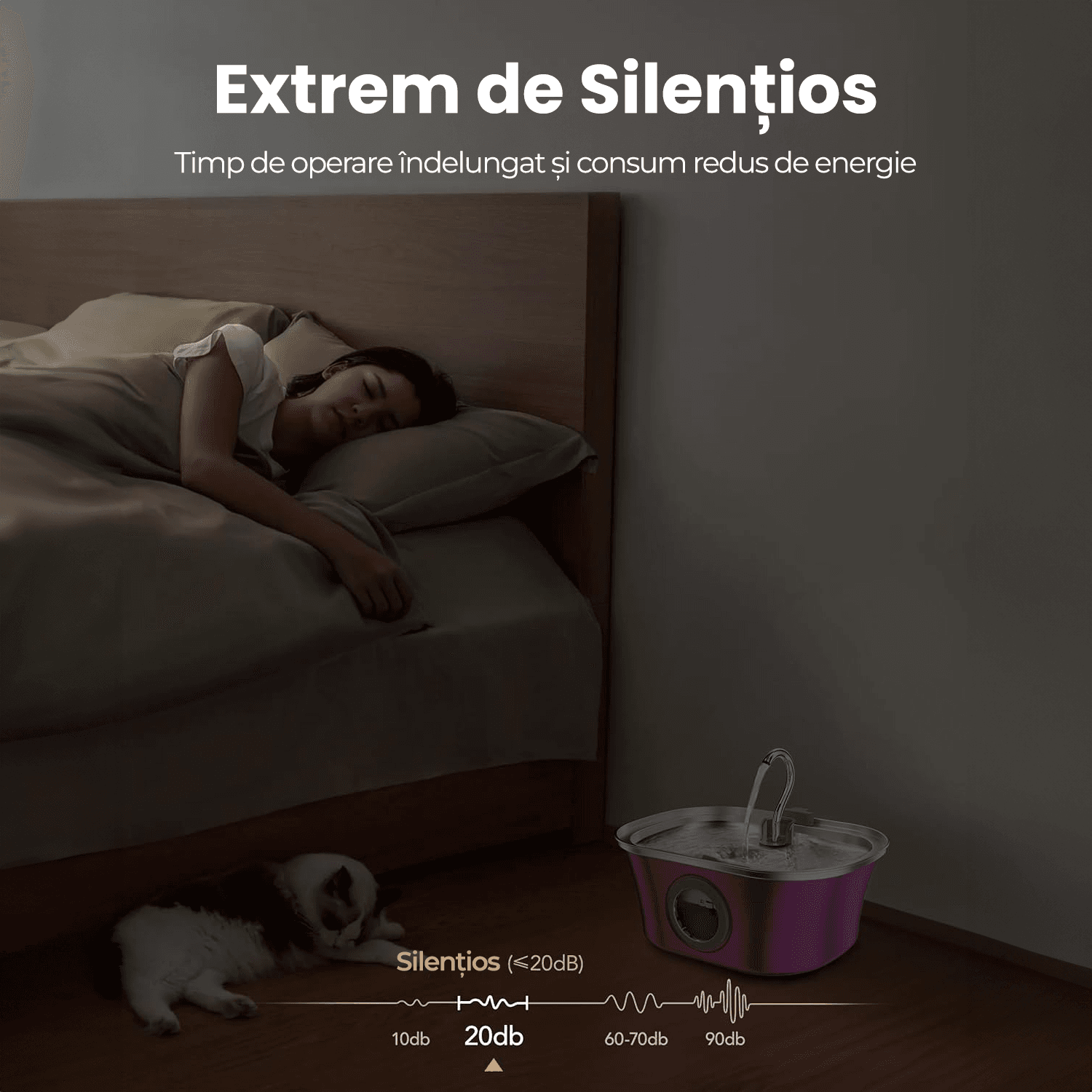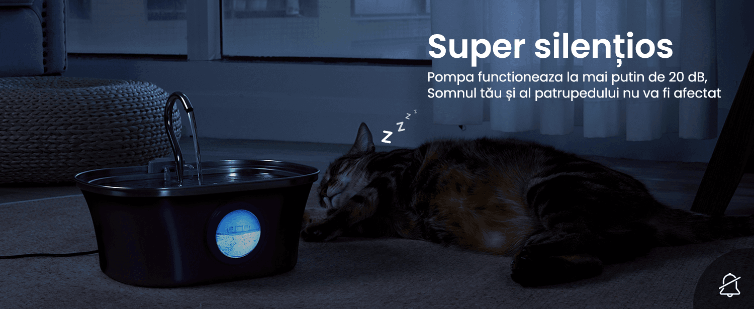 Pompa functioneaza la mai putin de 20 dB, pentru a nu deranja somnul animalului tau sau al tau.