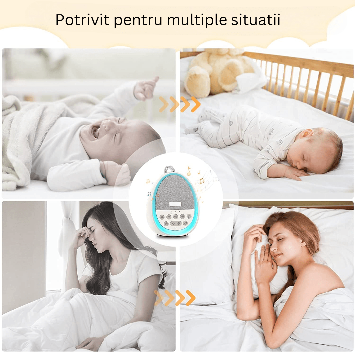 • MAI MULTE OPTIUNI DE SUNET, 29 de sunete HiFi si calmante - Acest dispozitiv de sunet are 29 de sunete linistitoare, inclusiv 7 zgomote albe, 7 sunete de ventilator si 15 sunete ale naturii (Pasare, Val, Parau, Feon, Cantec de Leagan, Greier, Ploaie, Foc, Pendul, Tren, Furtuna) pentru a va linisti copilul). Pur si simplu alegeti sunetul dorit pentru a crea un mediu relaxant si pentru a facilita un somn odihnitor - aparat de sunet ideal pentru bebelusi si la gradinita.