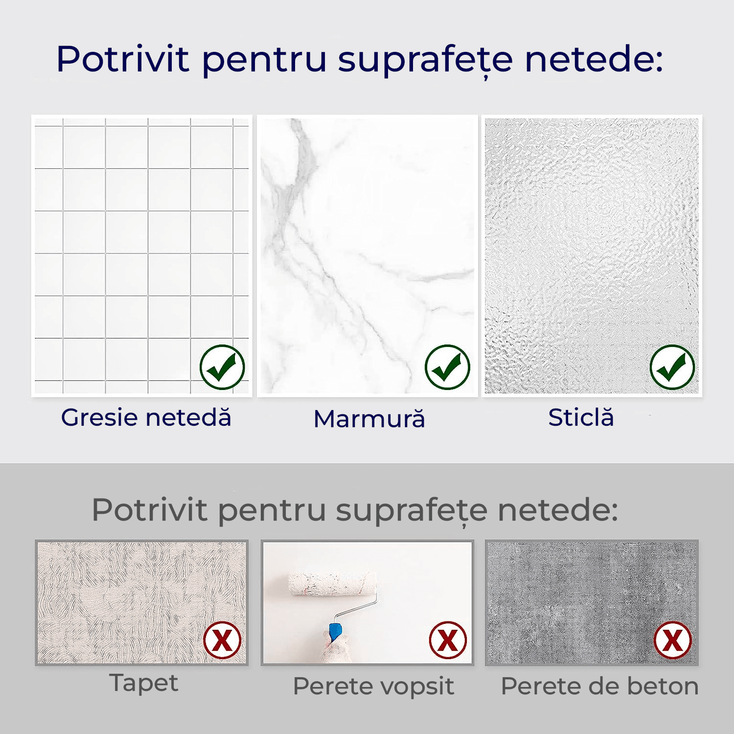 Montare fără Unelte - Ușor de asamblat și instalat. 2 adezivi puternici se asigură că raftul rămane stabil și nu se mișcă in timpul utilizării. Consultați videoclipul nostru pentru instrucțiuni de instalare. Dacă doriți să il indepărtați, incălziți adezivul cu un uscător de păr și apoi indepărtați-l cu ușurință.