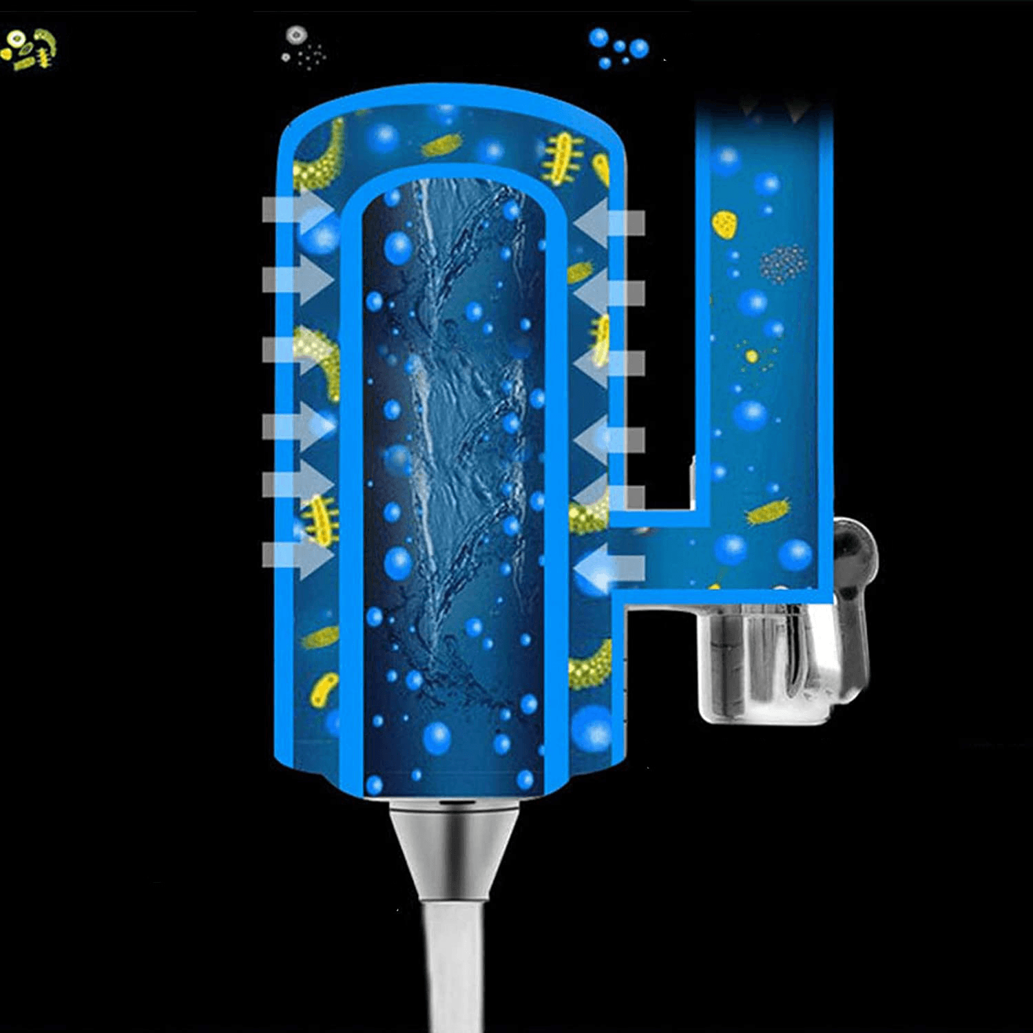-3 etape de filtrare: diatom ceramic; bile argint nano; bile mineralizate; carbon activ; sita din otel inoxidabil