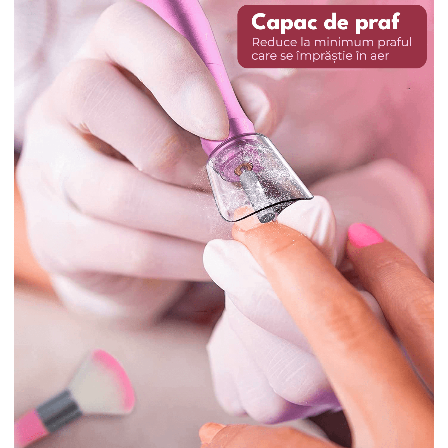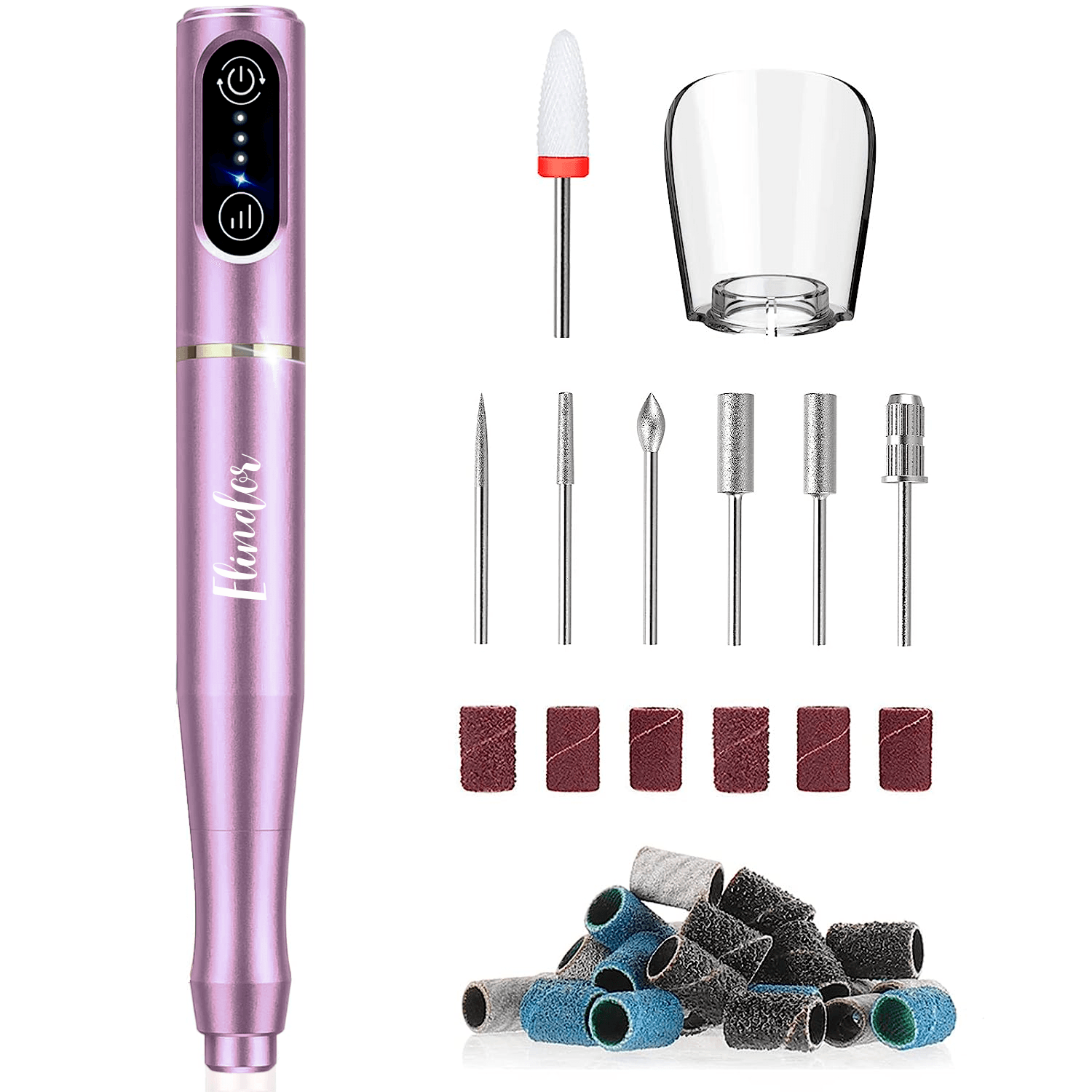 Freză unghii profesională wireless, 20.000 RPM, 6 capete, 60 benzi de șlefuire, roz
