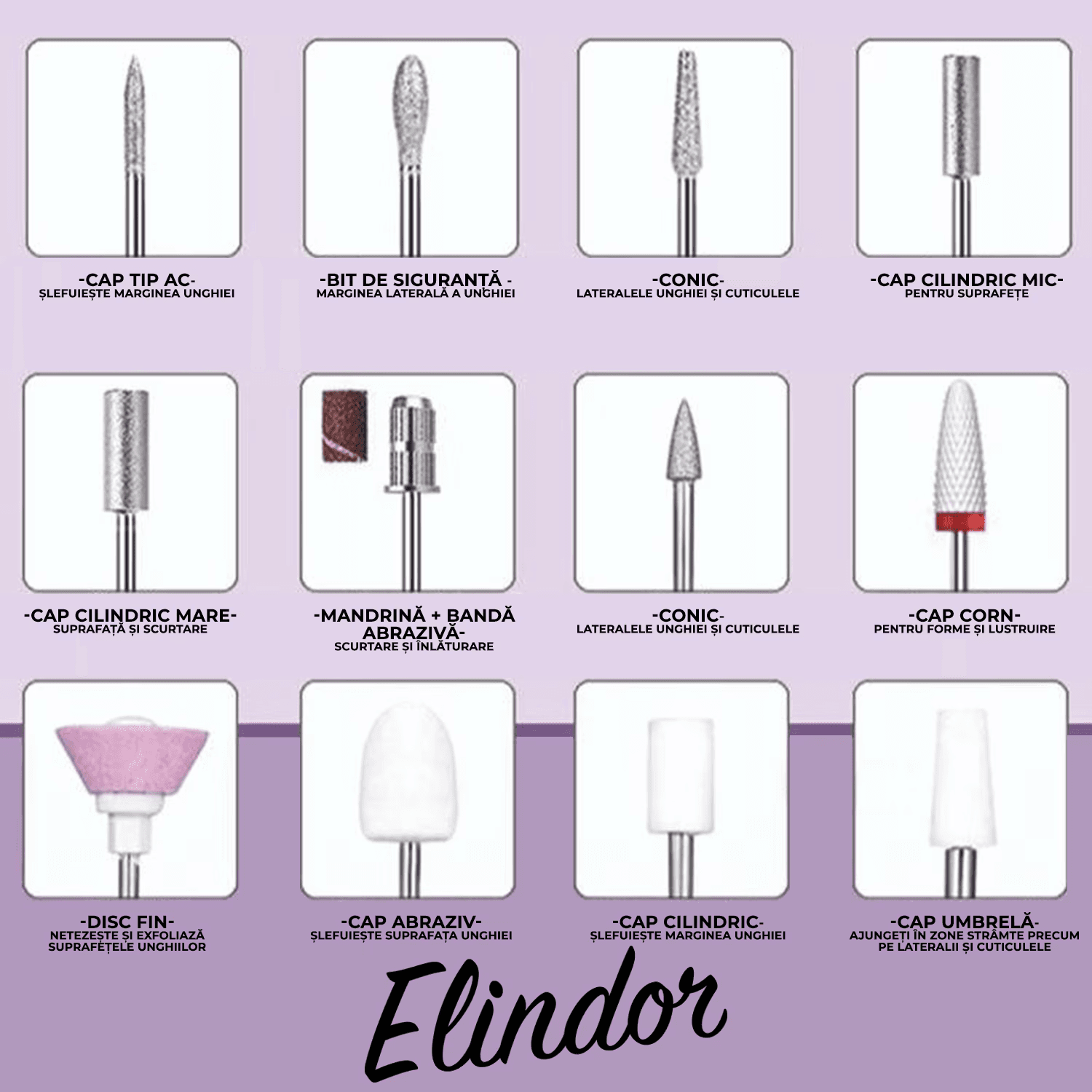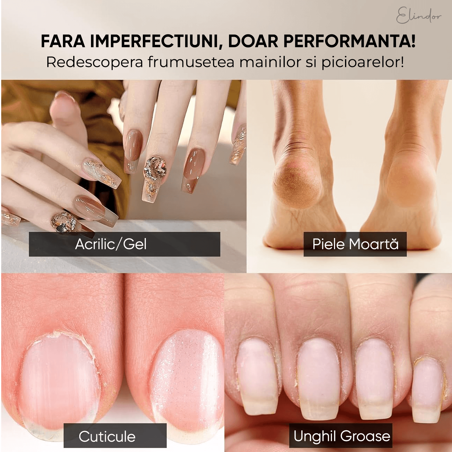 ✔ Include set capete freza unghii + bituri ceramice pentru precizie