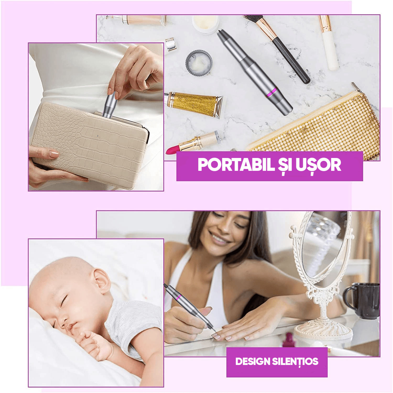 Zgomot redus: Durata de viata de peste 3 ani. Aceasta pila electrica pentru unghii este echipata cu un rulment de absorbtie a socurilor, un motor precis cu o carcasa de aliaj de aluminiu pentru racire, ceea ce asigura functionarea masinii pentru unghii silentios si fara vibratii, cu o caldura redusa. Va ofera o experienta confortabila in realizarea unghiilor.