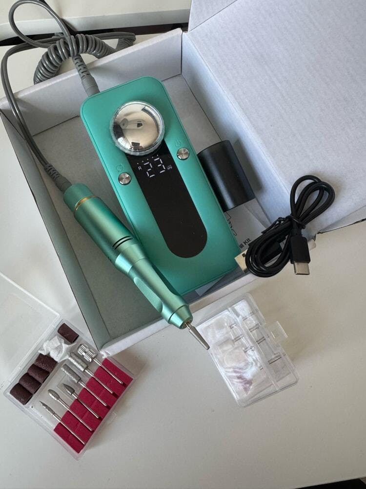 Freză unghii profesională wireless, 35.000 RPM, 4000mAh, power bank, verde