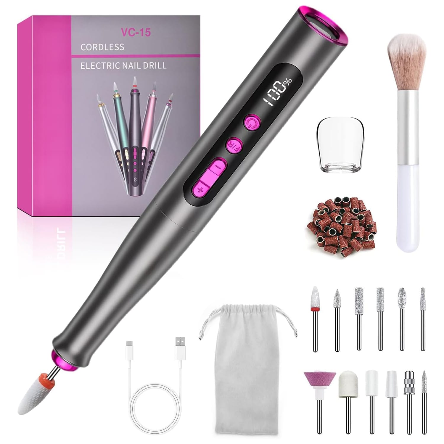 Setul vine complet echipat cu 12 capete profesionale, 36 de benzi abrazive, un scut anti-praf, o perie de curățare și un cablu USB – tot ce ai nevoie pentru rezultate impecabile, ca la salon. Display-ul LED inteligent îți arată cu precizie viteza, direcția de rotație și nivelul de încărcare, astfel încât să ai control total asupra sesiunii de manichiură. Fie că ești profesionist sau începător, funcția de rotire dublă (stânga-dreapta) și pauză îți asigură o manevrare ușoară și flexibilă.
