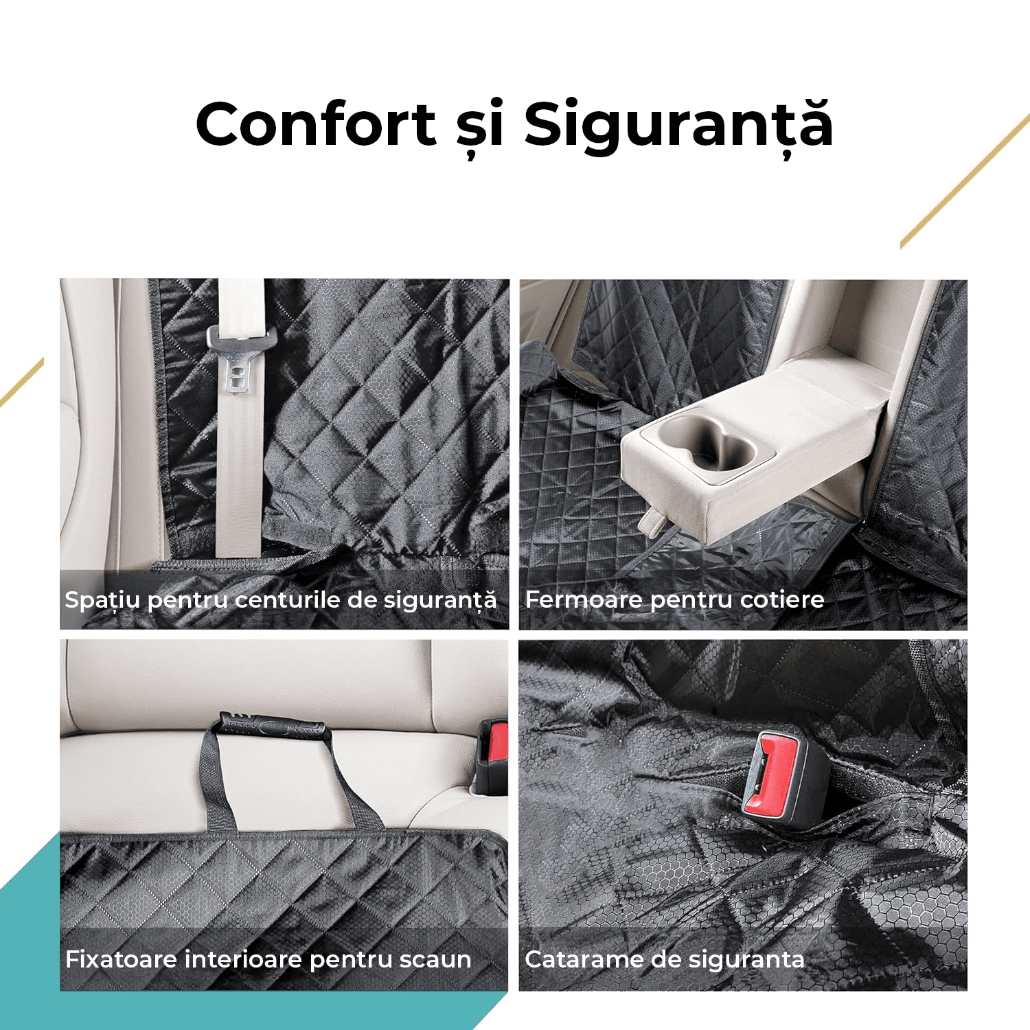 Marime universala: Husa auto pentru caini si pisici este de dimensiuni universale si se potriveste majoritatii autoturismelor. Designul inteligent creeaza o husa auto pentru caini complet confortabila si sigura. In plus, kitul include o lesa de siguranta care adauga protectie suplimentara pentru prietenul dvs. blanos si o geanta de depozitare pentru a pastra husa atunci cand nu este in uz.