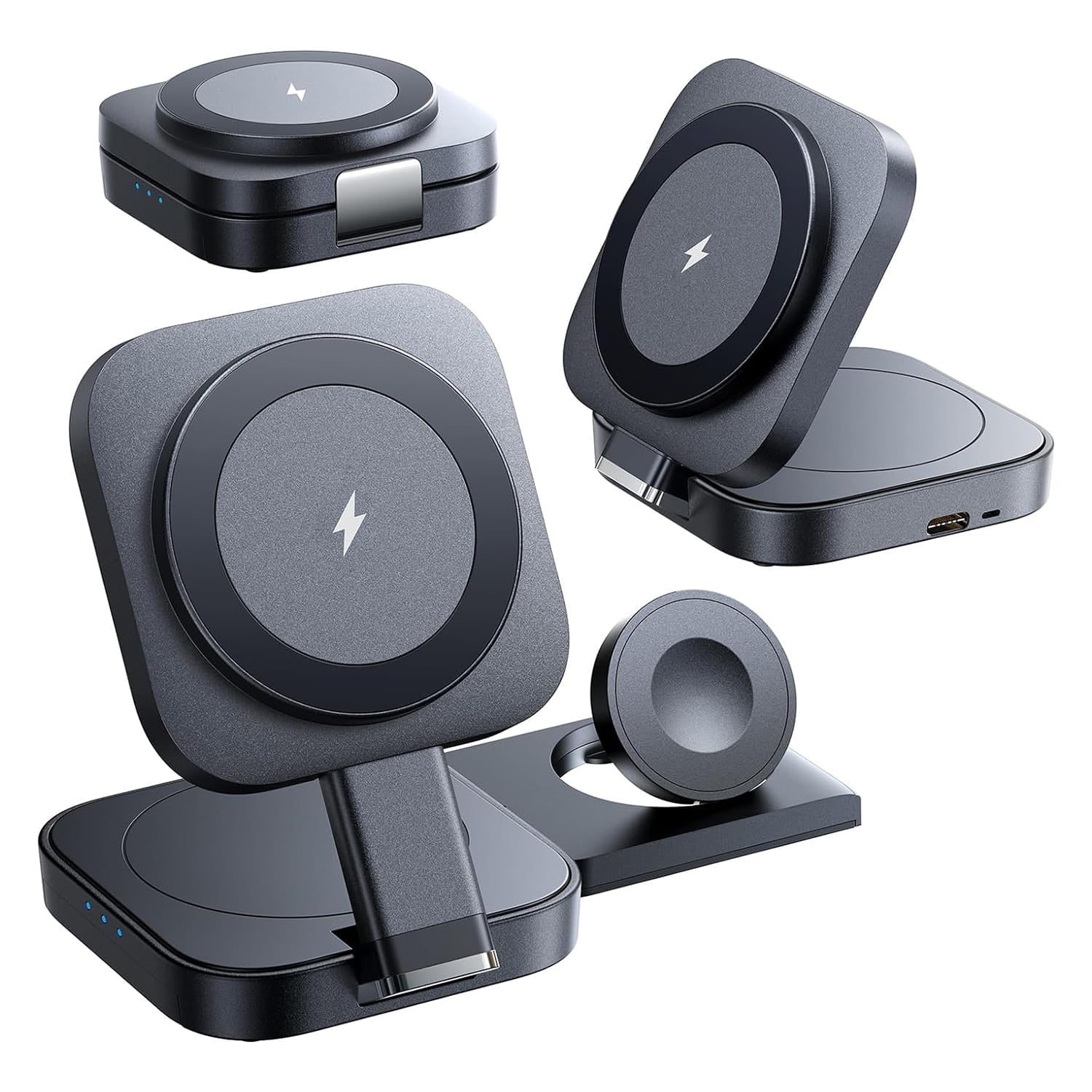 Incarcator Wireless 3 in 1 pliabil, pentru dispozitivele Apple, Magsafe, Statie de incarcare pentru Iphone, Ipad, AirPods, Negru