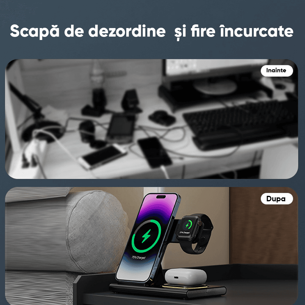 6.Usor de utilizat, doar asezati dispozitivele pe statie pentru a le incarca.