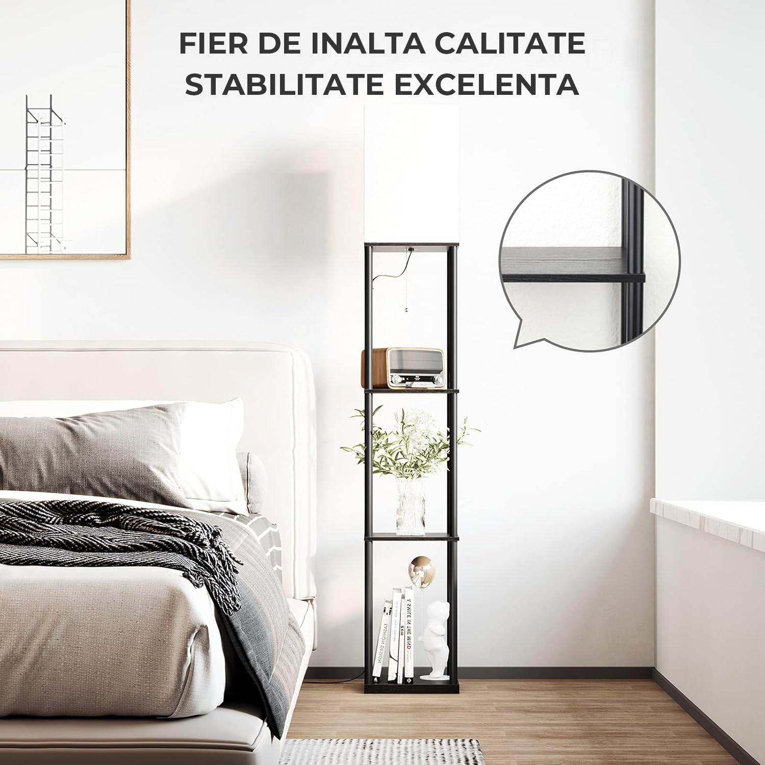 Lampa de Podea Decorativa Elindor® cu Structura Metalica, Rafturi de Depozitare,Abajur Textil, Negru