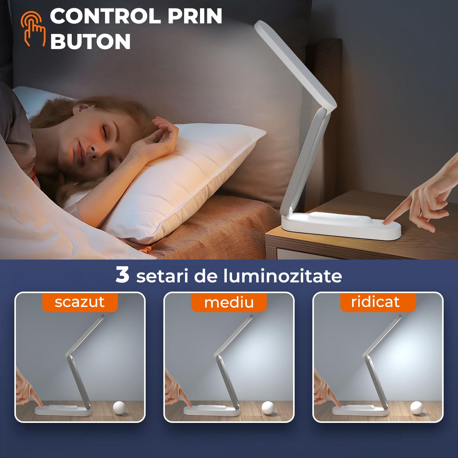 Lampa LED de Birou Elindor®, Pliabilă, 3 Moduri de Iluminare, Alb