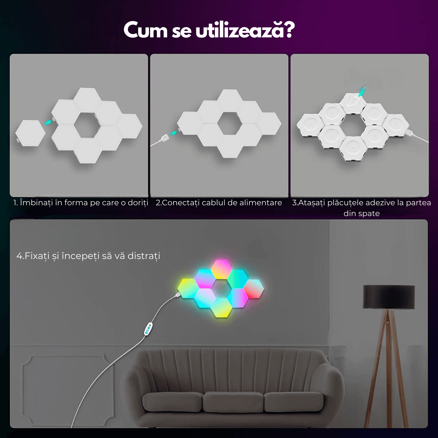 Produs: Panouri de lumina hexagonale inteligente
