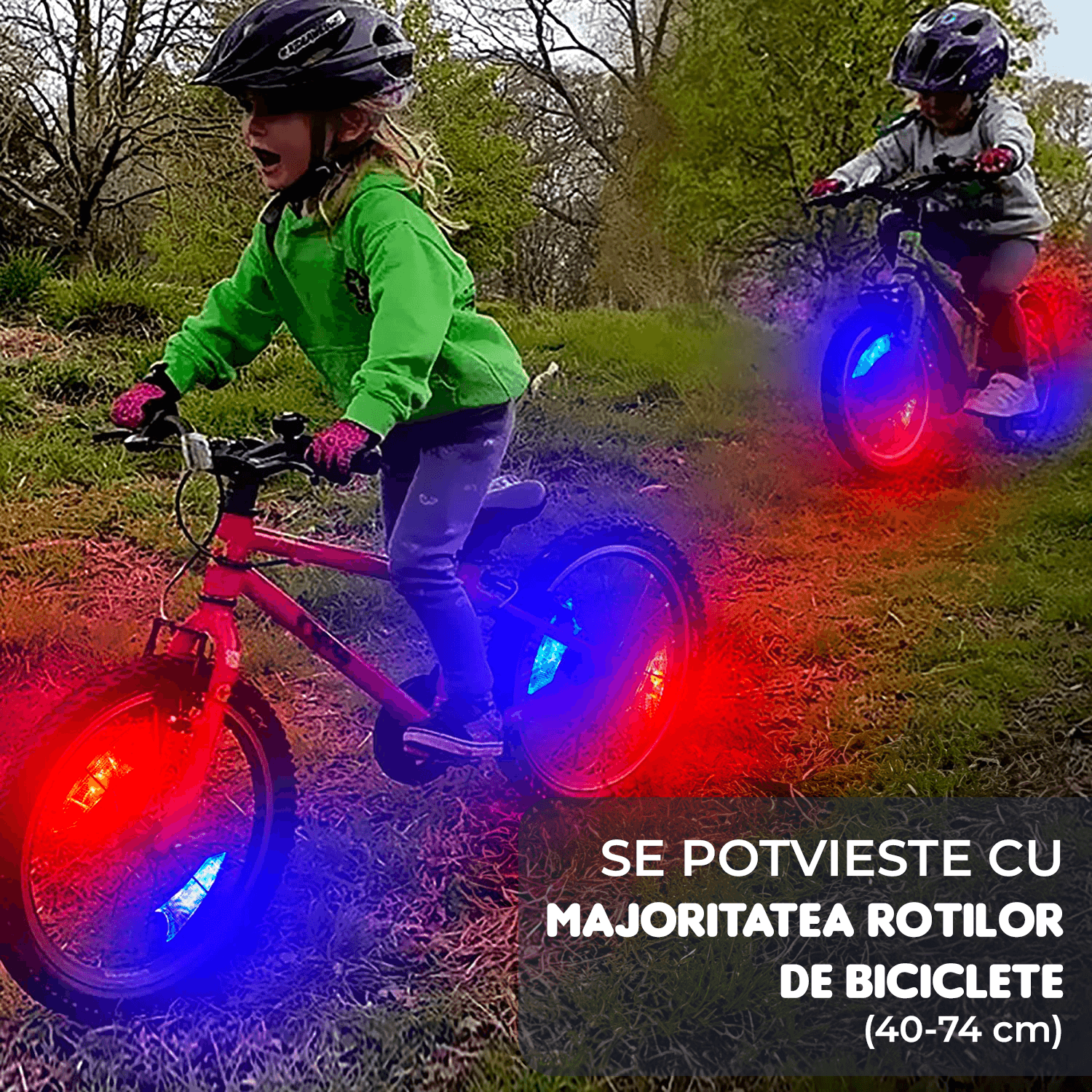 Lumina LED Spite Bicicletă: Strălucitoare, rezistentă la apă IPX5, multicoloră, cu baterii incluse