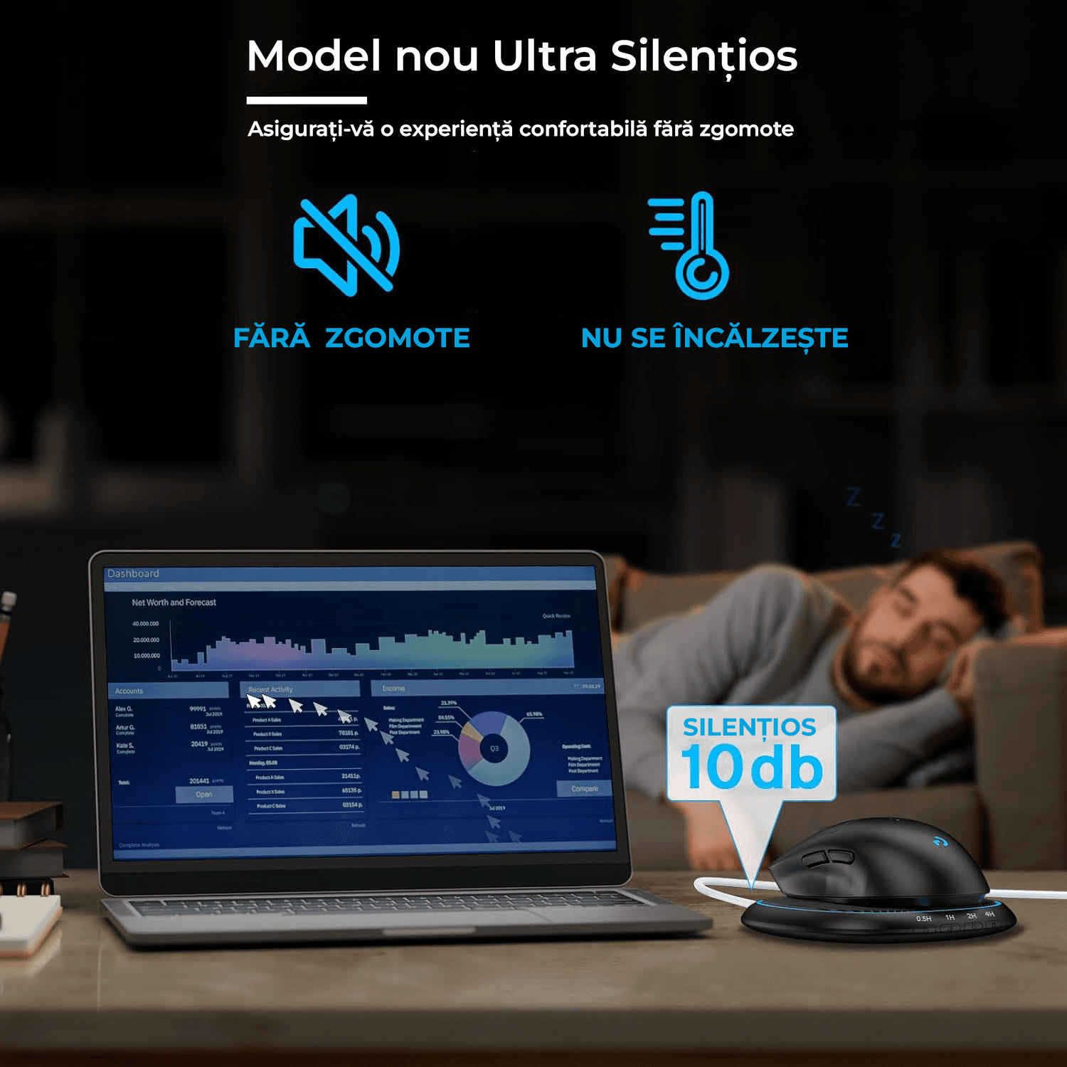 Mouse Jiggler Ultra Slim, Silentios, Timer Reglabil, Buton ON-OFF, Nedetectabil, Iluminare Ambientală, Negru