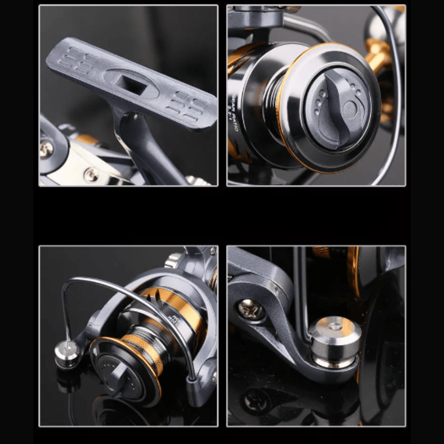 1. Bobina cu bara metalica de mare capacitate, maner basculant complet metalic, unelte de linie groase si flexibile, inel de iesire din metal, corp principal de inalta rezistenta, pescuit pe stanca, pescuit pe mare, roti de filare universale.