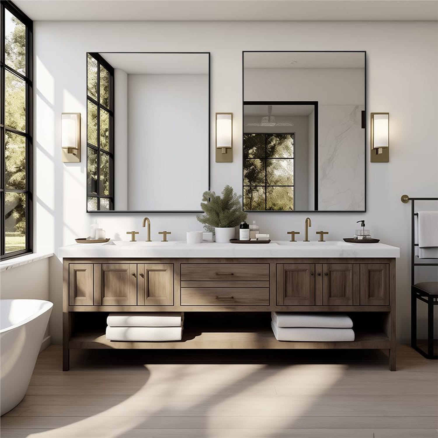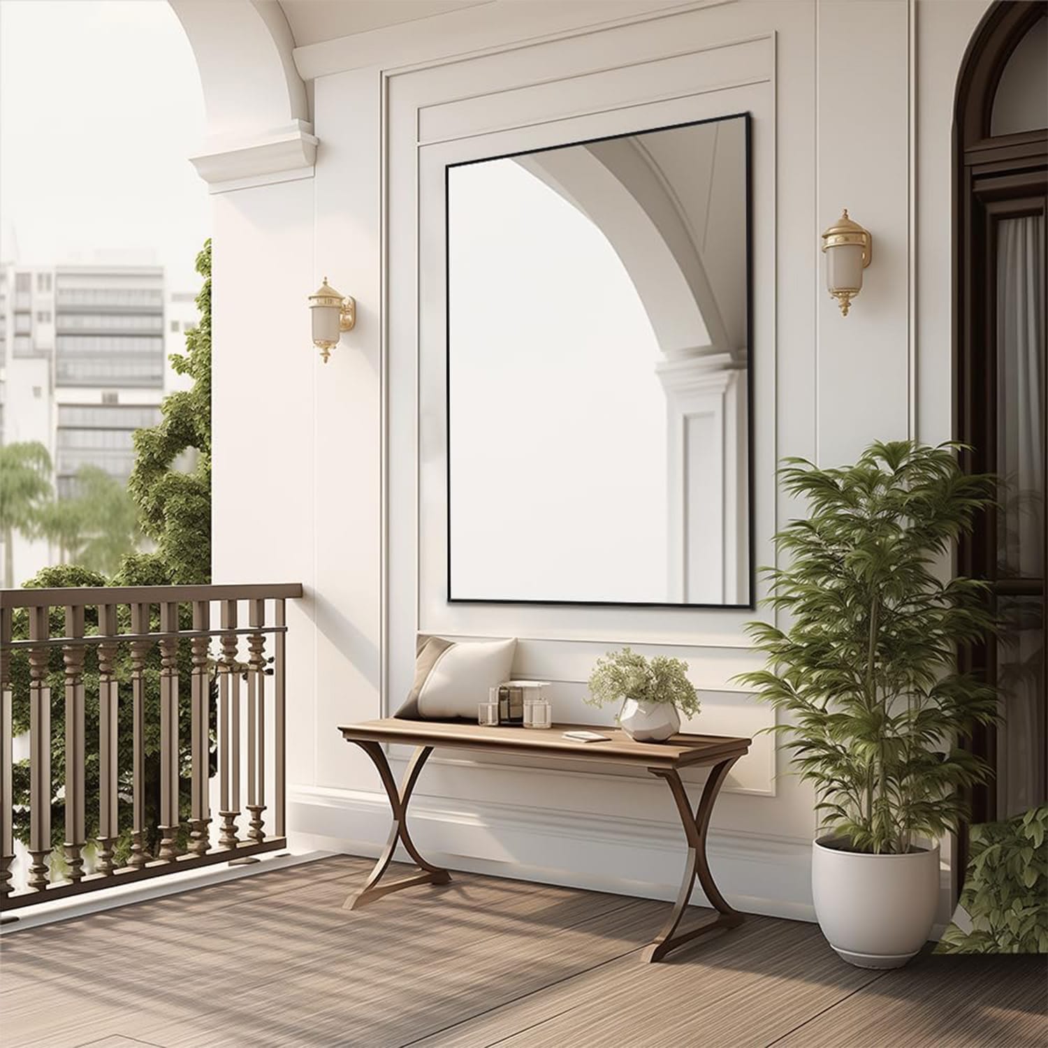 Datorita designului modern si versatil, oglinda se integreaza perfect in orice decor, fie ca este vorba despre baie, dormitor, living, hol, salon, hotel sau spatii comerciale. Rama metalica mata adauga un plus de rafinament si eleganta, completand stilul oricarui interior.
