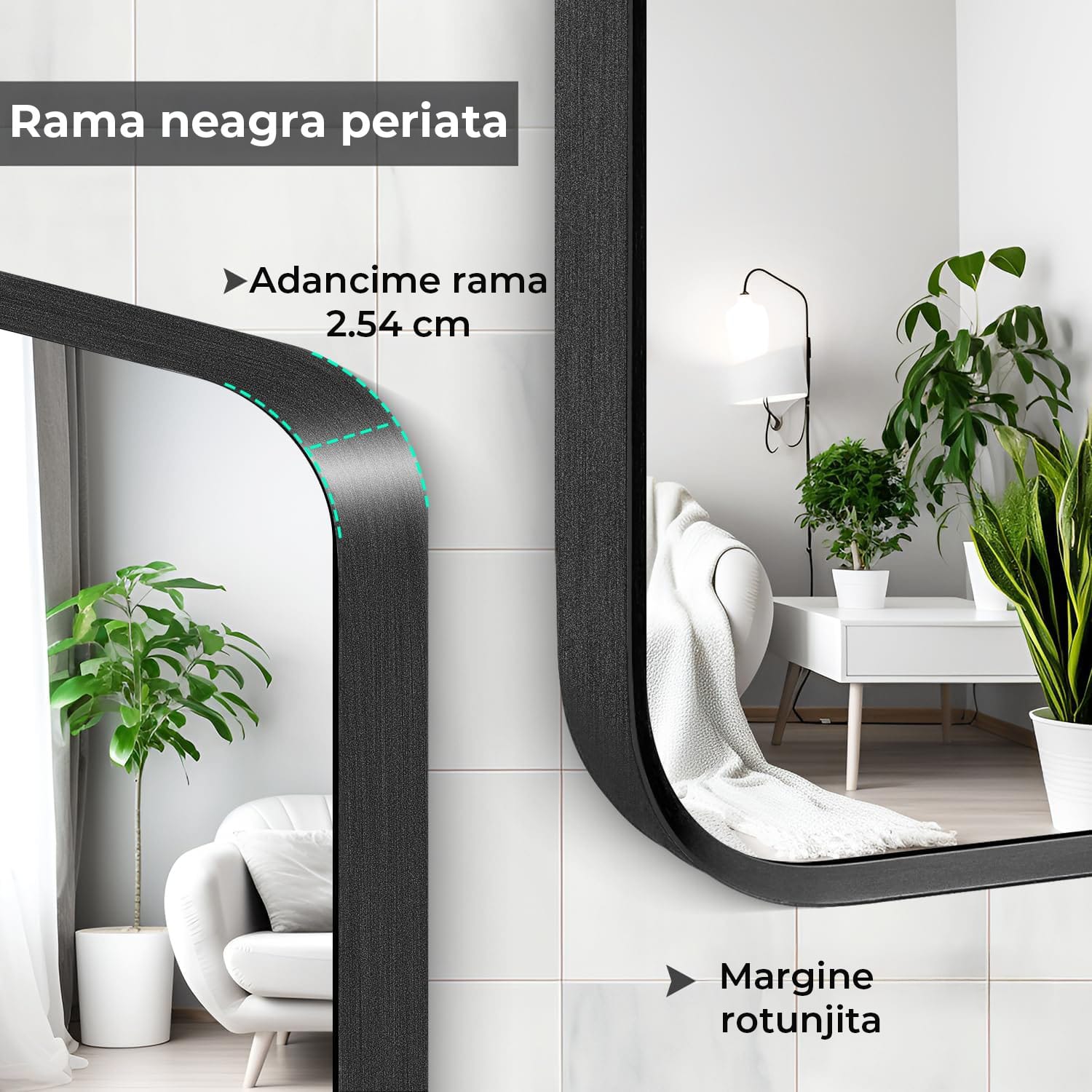 Oglinda Dreptunghiulara Elindor®, Margini Rotunjite, Reflexie HD, Sticla Premium, 75x55 cm, Negru