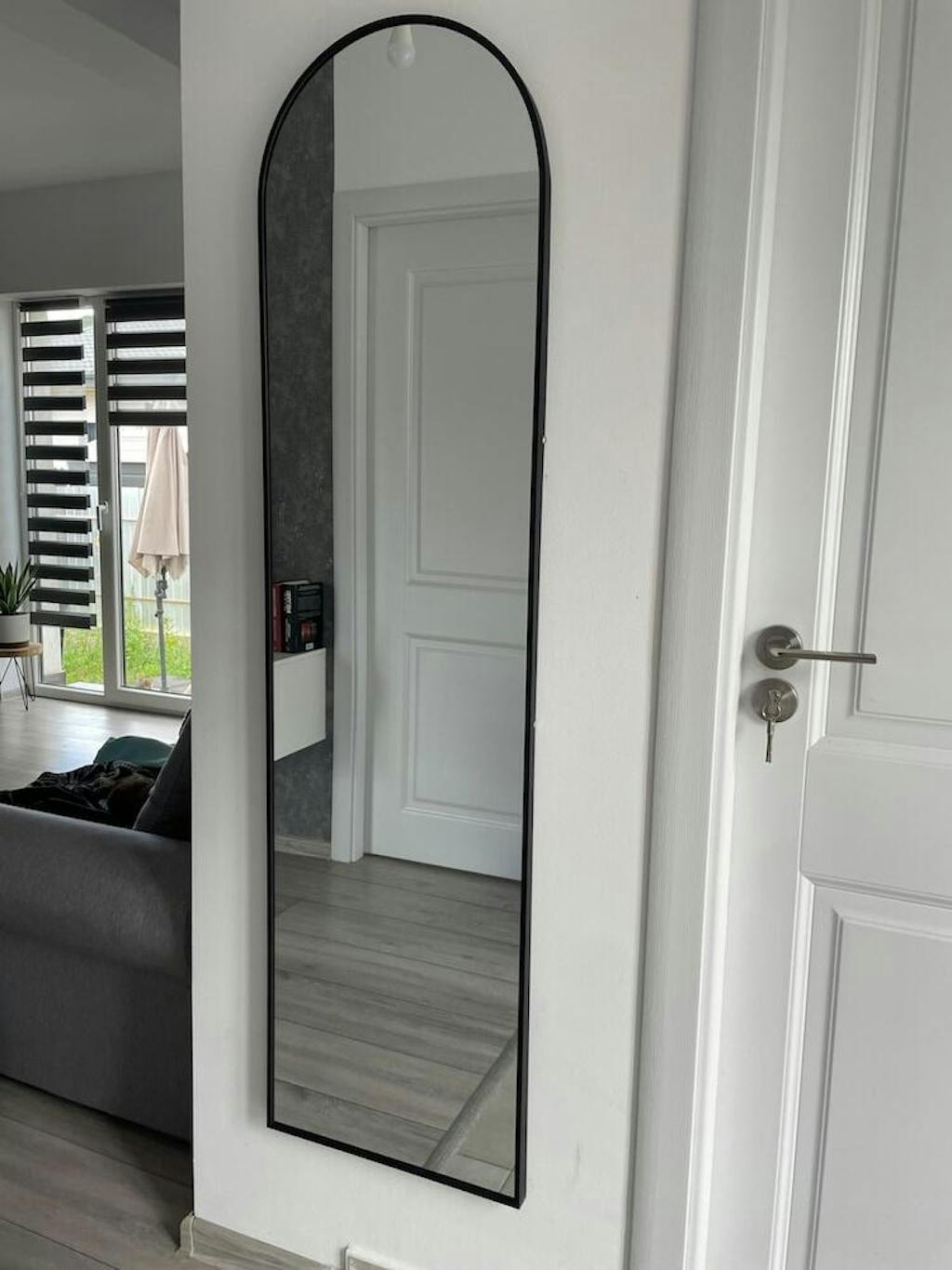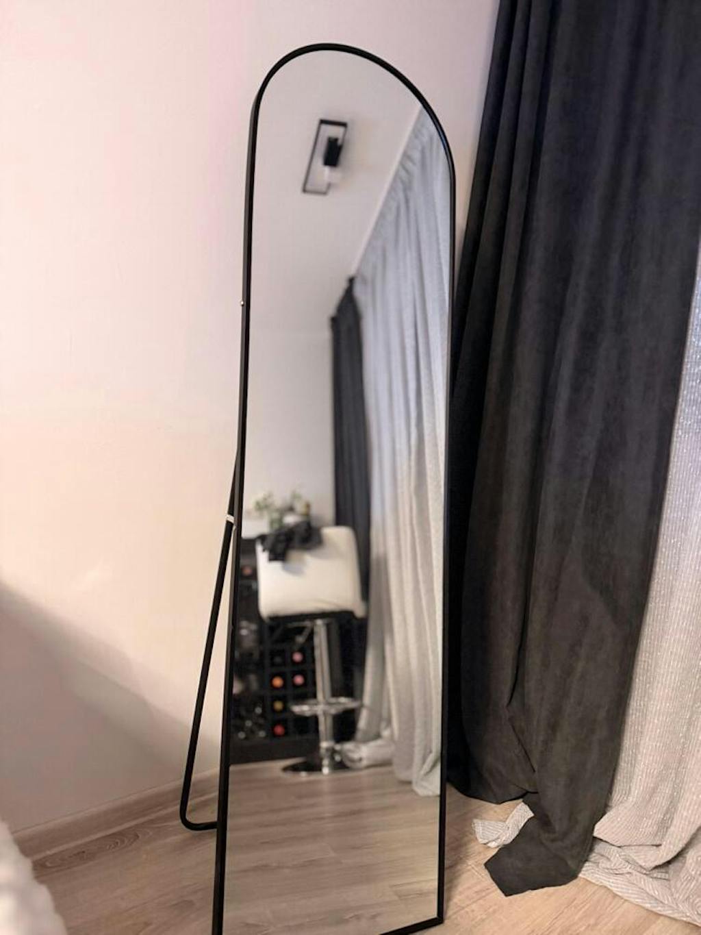 Oglinda Elindor® Cadru din Aluminiu, 150x40 Cm, Design Arcada, Modern, Montaj pe Perete sau Podea, Ideala pentru Dormitor, Living sau Hol, Negru
