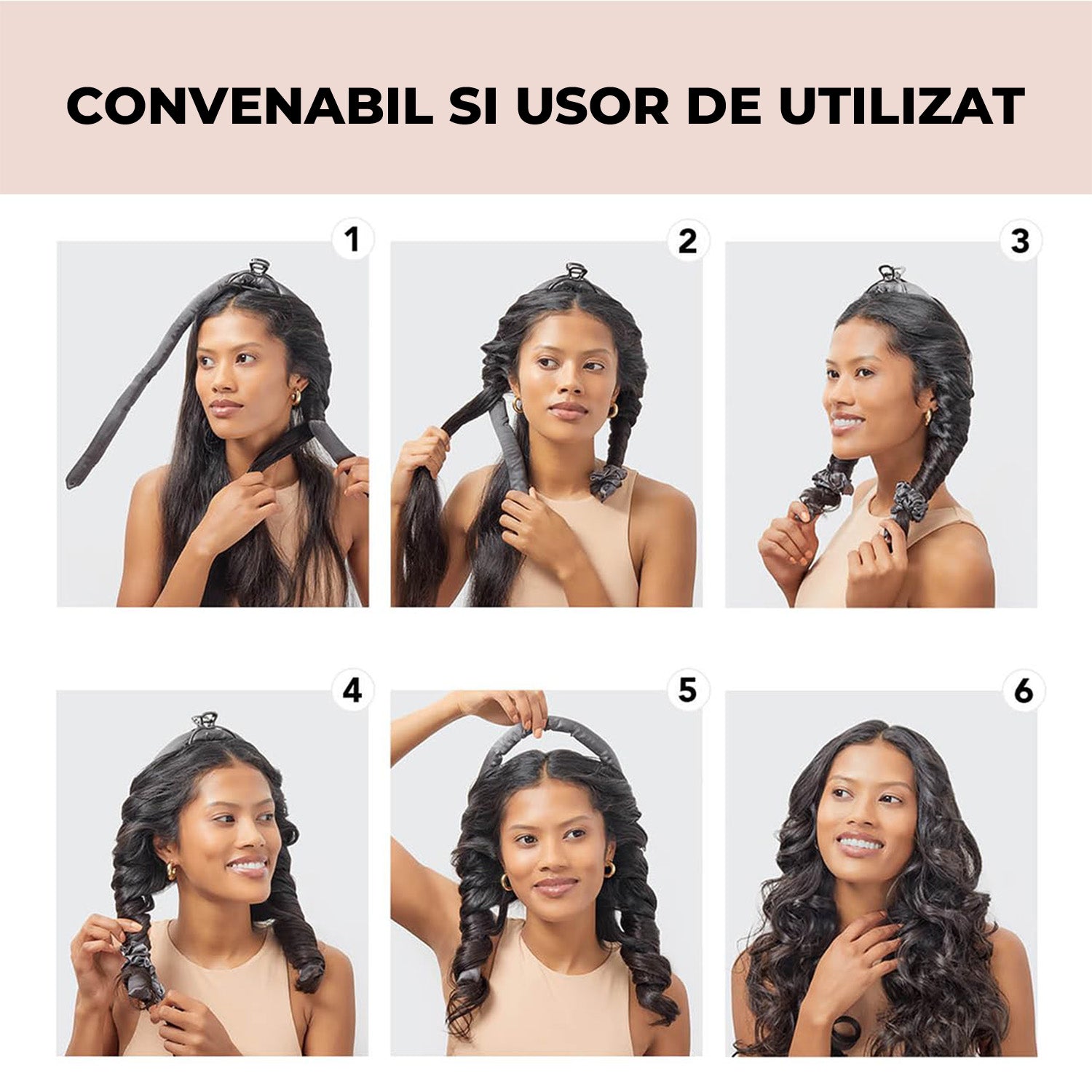 Ondulator din Satin Elindor®, Bucle fara Caldura, Protectie pentru Par, Confortabil, Negru