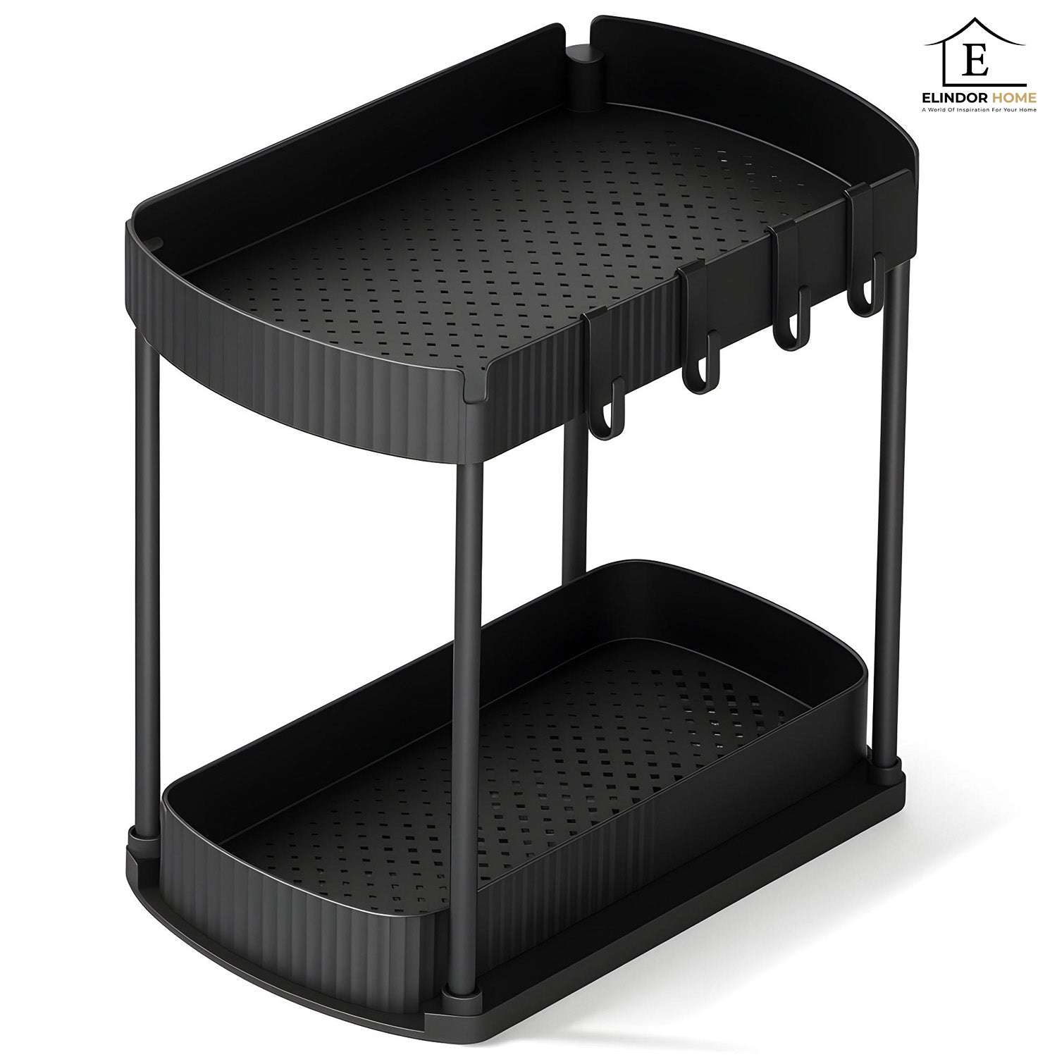 Organizator Elindor® cu 2 Nivele, Recipient de Depozitare Multifunctional si Glisant, Organizator pentru Dulapul de sub Chiuveta din Baie si Bucatarie, 20.3 x 38 x 32.5 cm, Negru