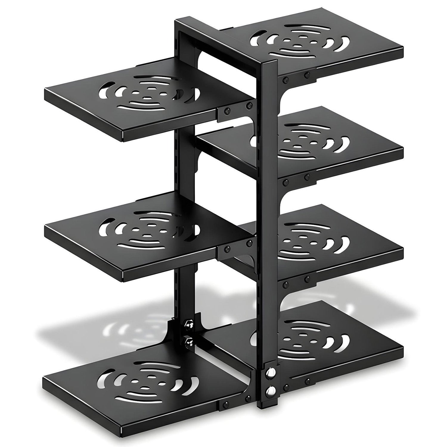 Organizator Oale si Capace Elindor® – Suport Reglabil cu 7 Compartimente, pentru Dulap Bucatarie, Fier Forjat, 51 × 22.6 × 53 cm